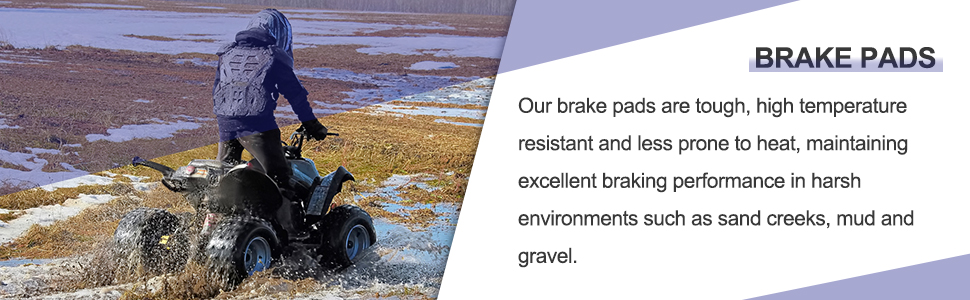 جودة فائقة: تقاوم وسادات الفرامل درجات الحرارة العالية ولا تسخن بسهولة، وتحافظ على أداء فرامل ممتاز في البيئات القاسية مثل الرمل والطين والحصى. التثبيت بسهولة