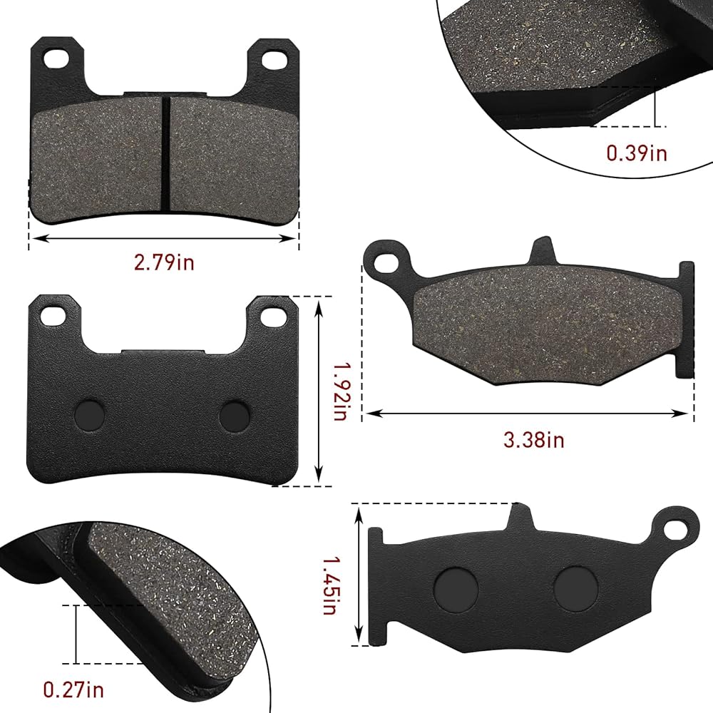 محتويات العبوة: تتضمن العبوة 3 أزواج من وسادات الفرامل (2 أمامي و1 خلفي)، مصنوعة من شبه معدني، وتتميز بخصائص احتكاك جيدة.