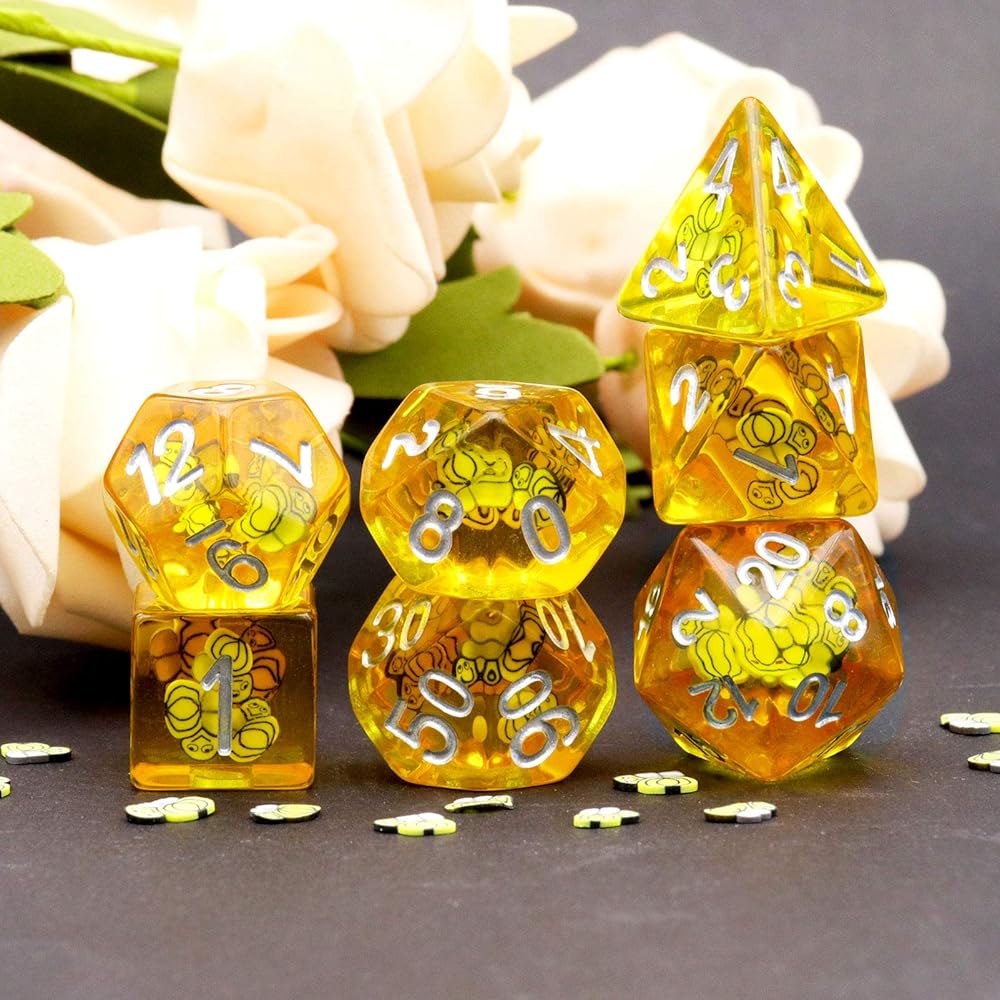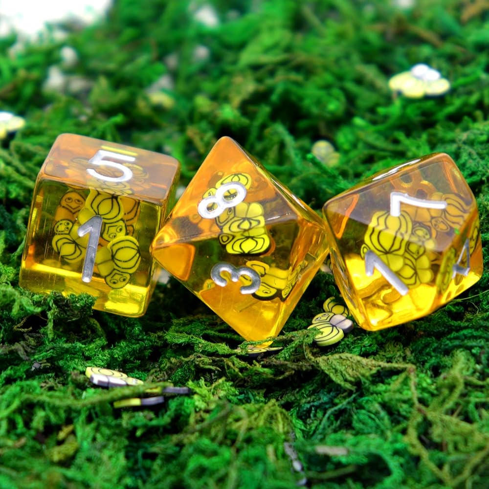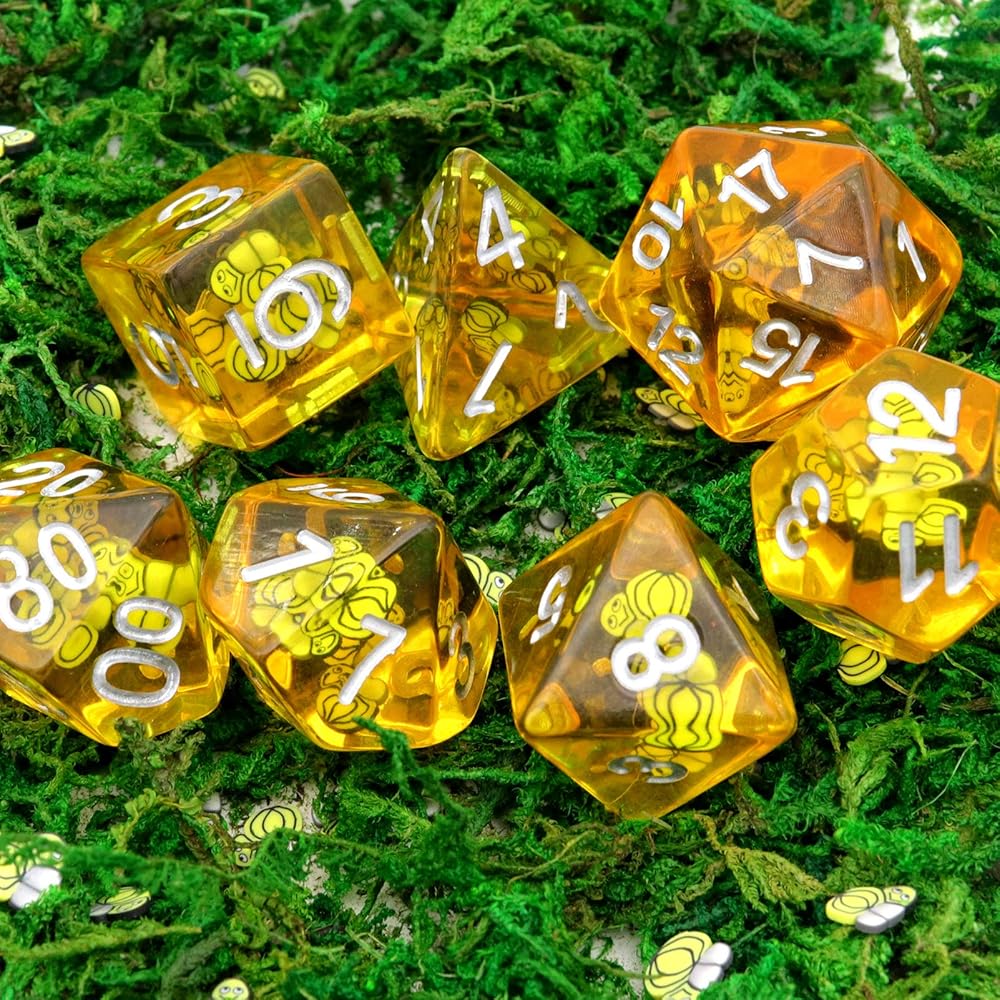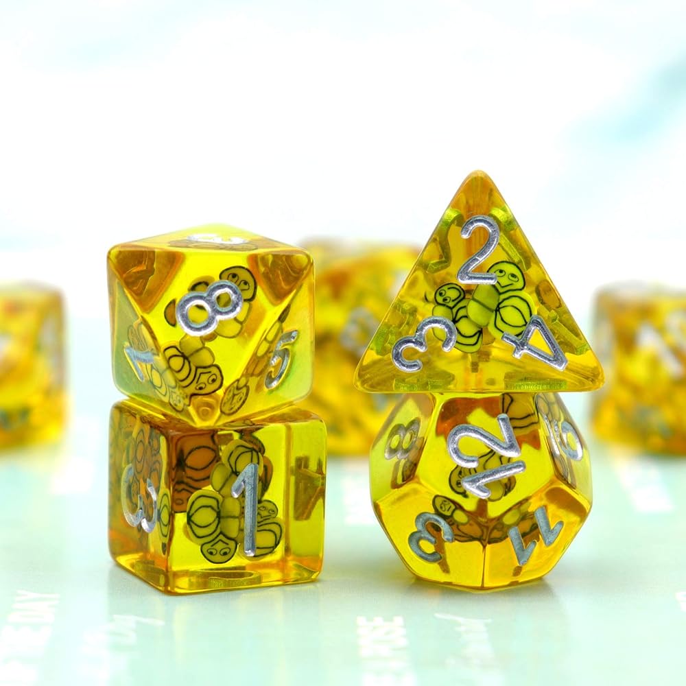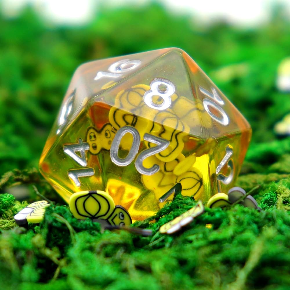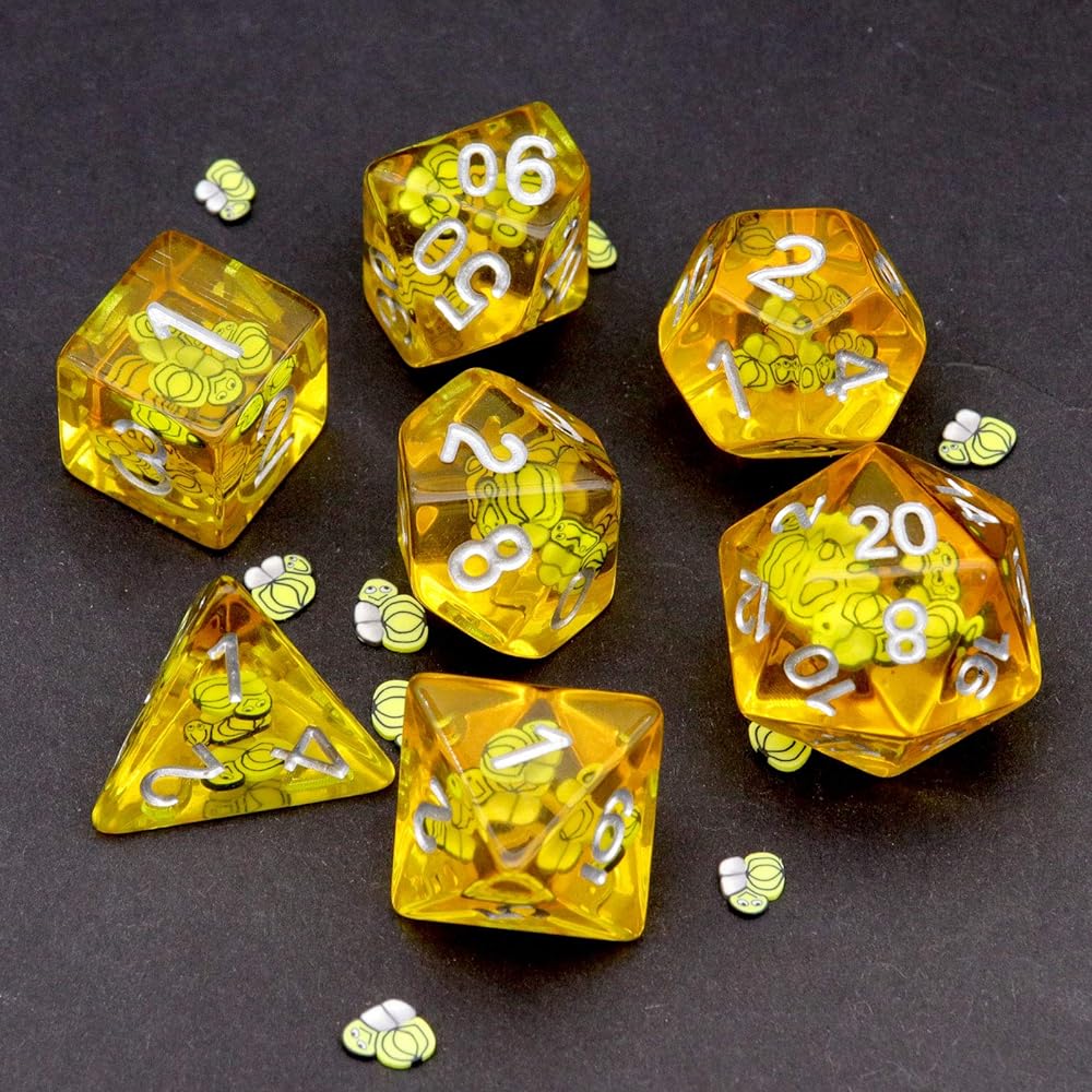 Quality resin dnd dice set with animal inside. Cute bees dice.