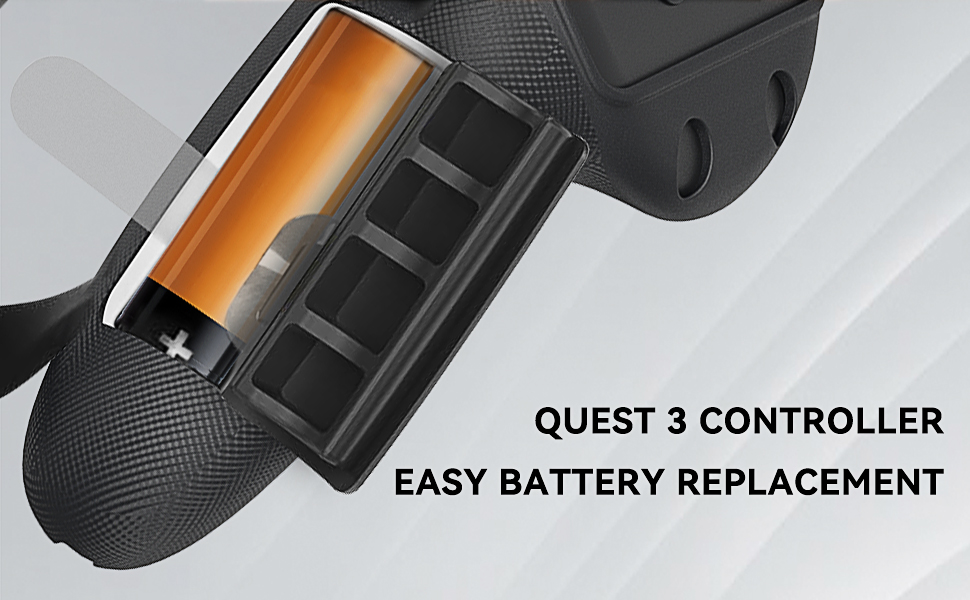 💙【سهولة استبدال البطارية】: مقابض وحدة التحكم D.Gruoiza متوافقة تمامًا مع Meta Quest 3. تصميم فتحة البطارية المطوَّر يلغي الحاجة إلى إزالة غطاء مقبض وحدة التحكم بالكامل، ما عليك سوى سحب قطعة البطارية البلاستيكية لإزالة البطارية. (ملاحظة: يجب أن تكون ألسنة سحب البطارية البلاستيكية موجودة أسفل البطاريات وليست مناسبة لقاعدة الشحن.)