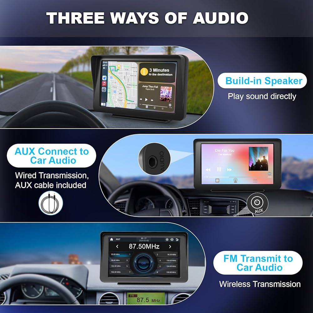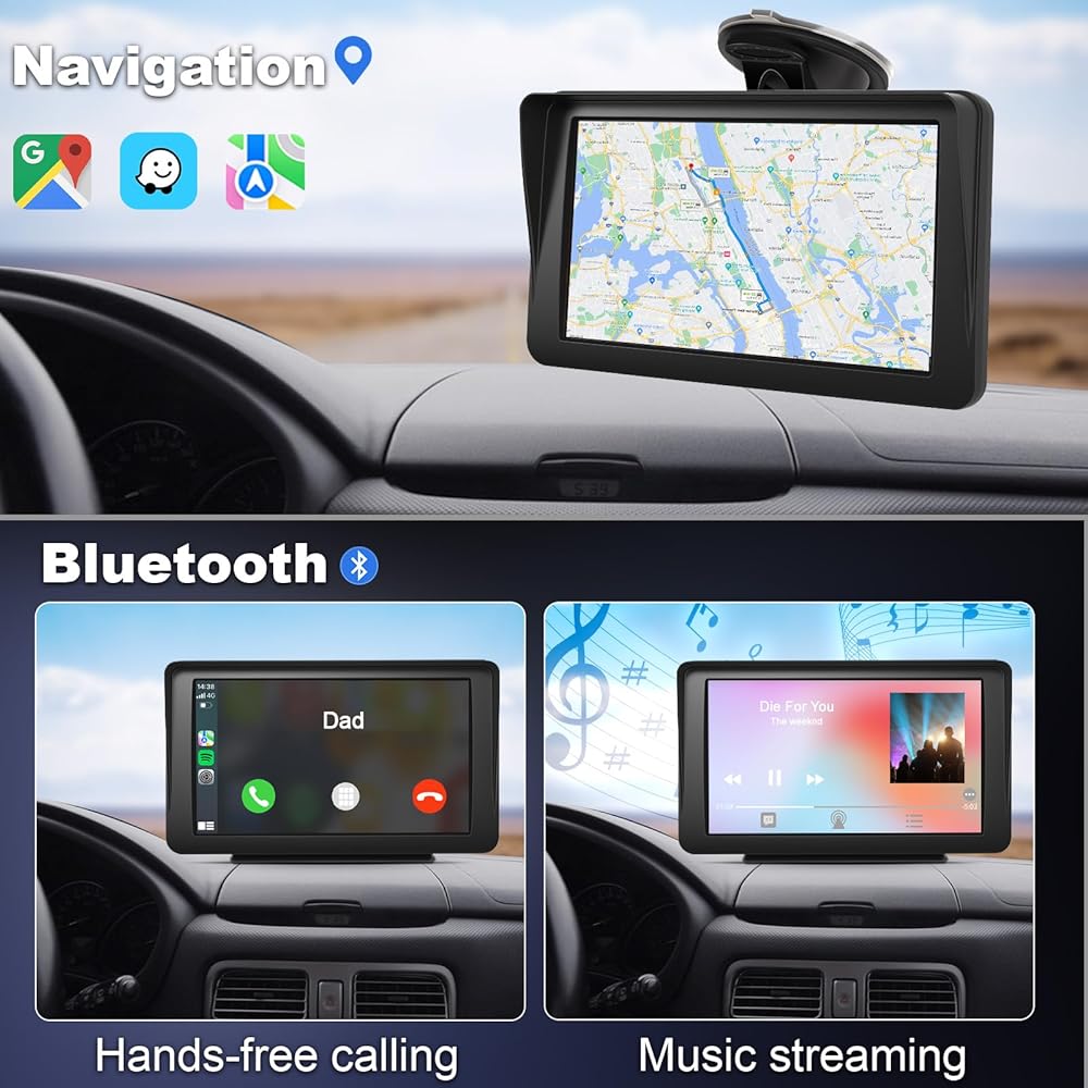 ستيريو سيارة بلوتوث لـ Apple Carplay - Lehwey Wireless Android Auto، شاشة Carplay محمولة، شاشة لمس IPS 7 بوصة، تشغيل السيارة بدون استخدام اليدين، مع تشغيل هوائي، وصلة مرآة، FM/AUX/USB/TF، ملاحة السيارة