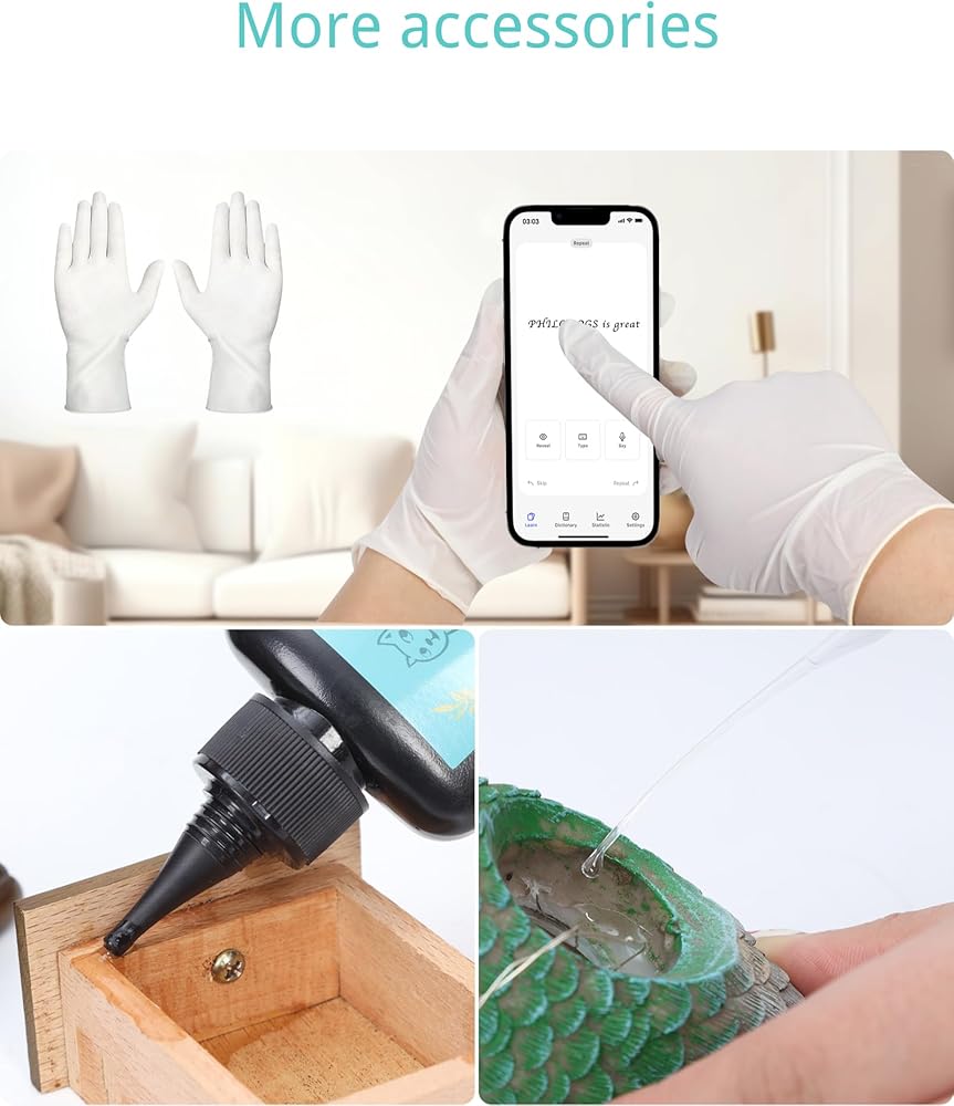 • دعم قطارات الغراء الطويلة: ملحقات Colle - قطارات الغراء cyanoacrylate تجعل من السهل التحكم عند استخدامها كغراء بلاستيكي، أو إصلاح غراء السيراميك للفخار، أو غراء القماش، أو غراء الأحذية، أو غراء النموذج إذا لزم الأمر.