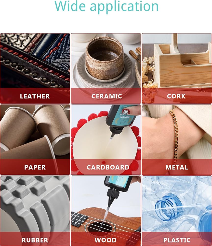 • تعدد استخدامات الغراء: يعد هذا الغراء الفائق رائعًا للبلاستيك أو الخشب أو المعدن أو الزجاج أو الحرف اليدوية أو إصلاح السيراميك أو أكثر من غرض. يعمل الغراء اللاصق الفوري بشكل جيد للإصلاحات المنزلية للتطبيقات الصناعية. سوف يتجاوز ذلك توقعاتك.