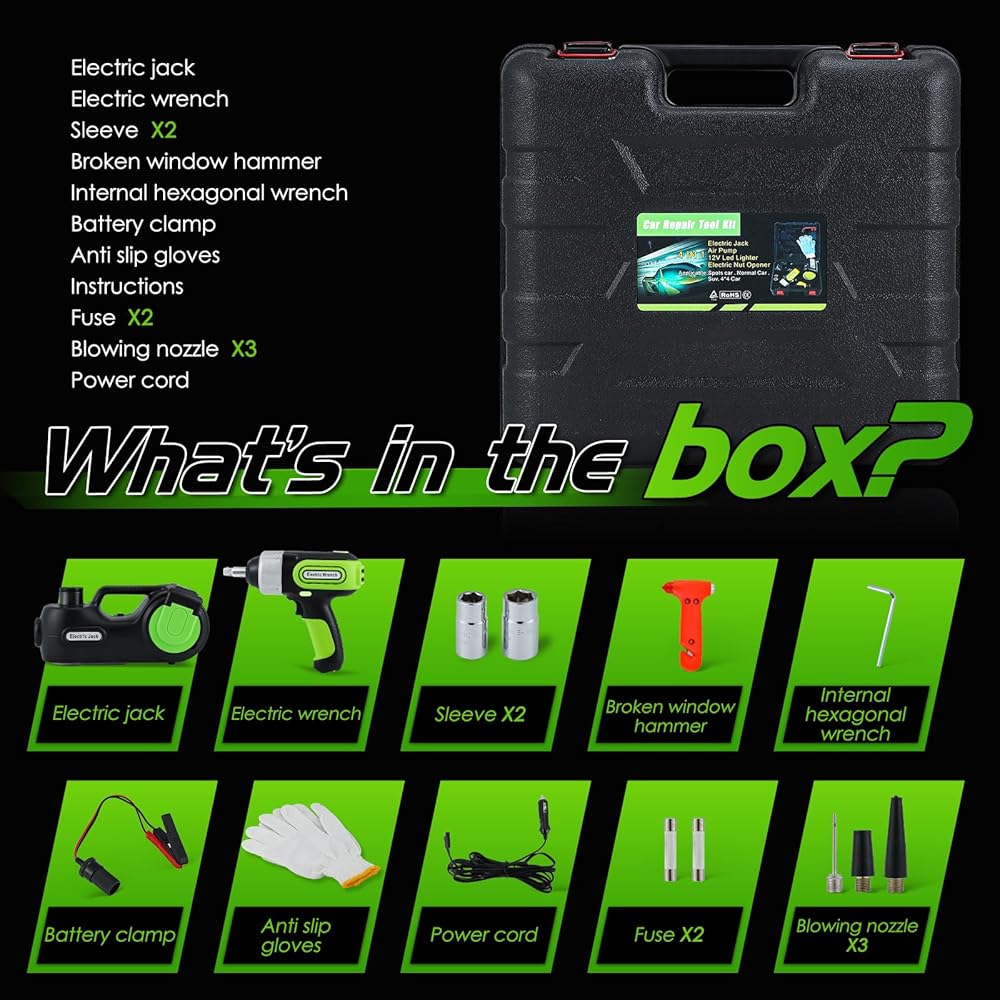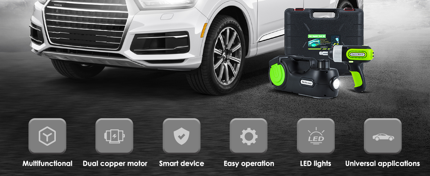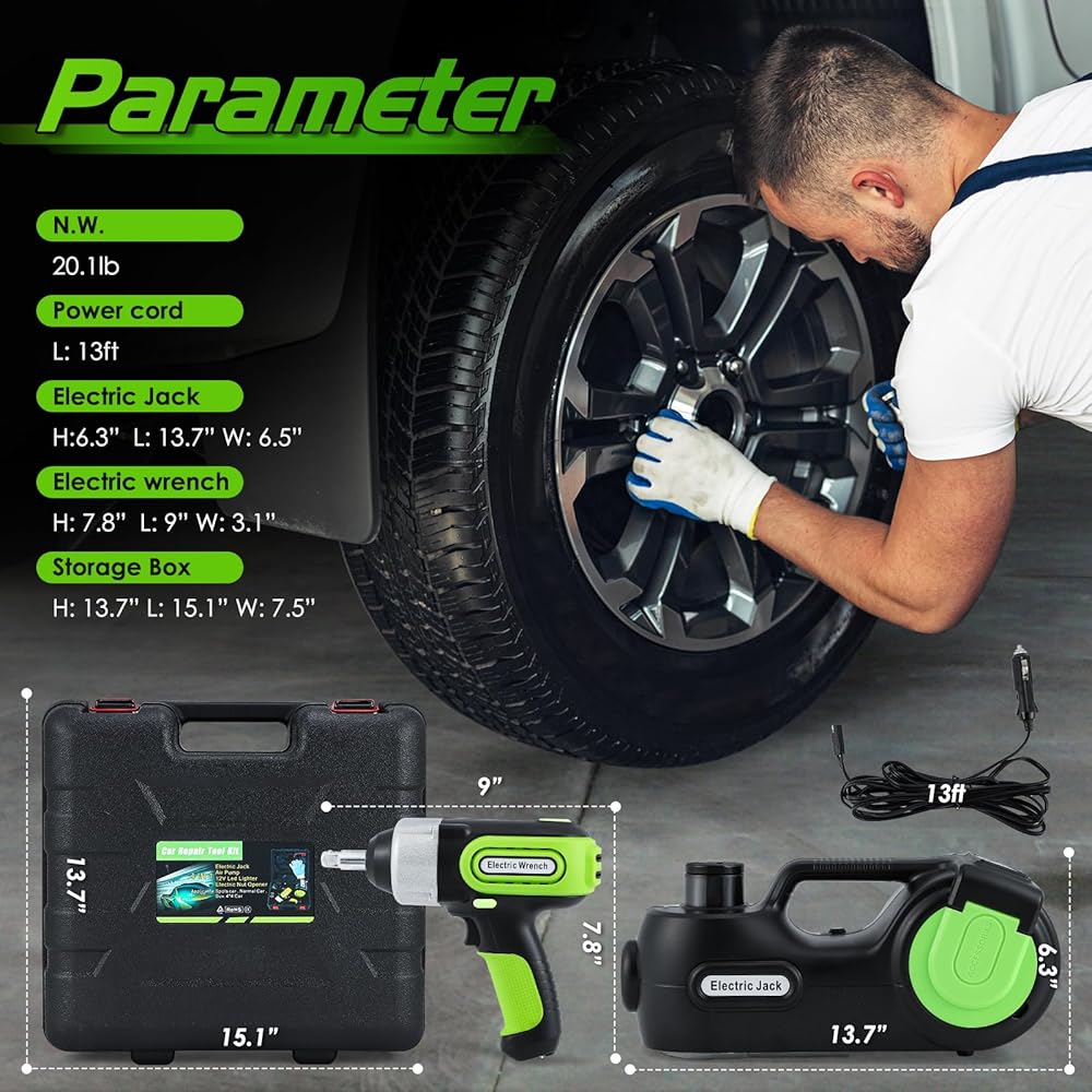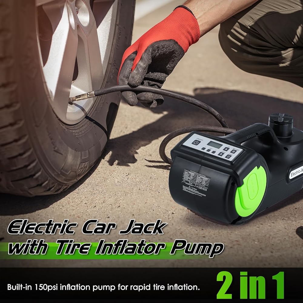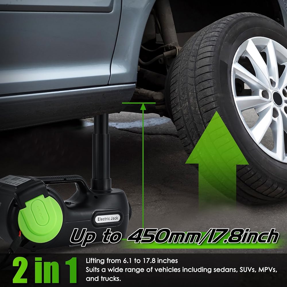 [رافعة كهربائية سريعة وموثوقة]--- توفر مجموعة رافعة السيارة الكهربائية، القادرة على رفع وزن أقصى يصل إلى 5 أطنان، حلاً فعالاً لاستبدال الإطارات. مزود بشاشة LCD لضغط الإطارات، يصل رافعة السيارة الهيدروليكية هذه بسهولة إلى أقصى ارتفاع لها في أقل من دقيقتين، مما يوفر نطاق رفع من 6.1 إلى 17.8 بوصة. مجهزة بمضخة نفخ مدمجة بقوة 150 رطل لكل بوصة مربعة، يمكنها نفخ الإطارات بسرعة.