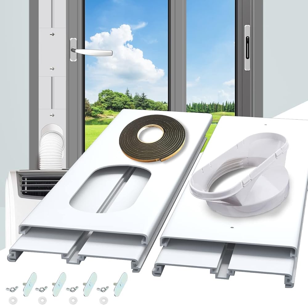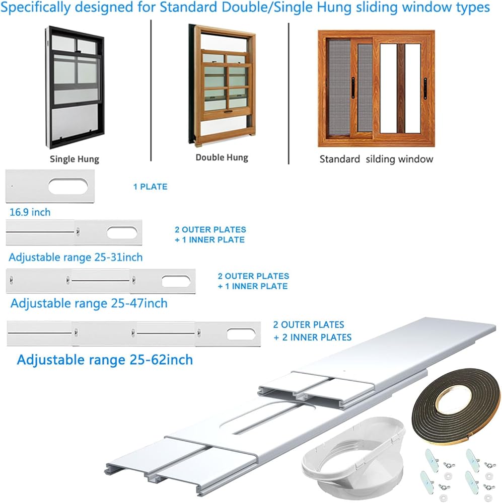 مجموعة نافذة التيار المتردد المحمولة من Gulrear للنافذة الرأسية أجزاء ختم نافذة مكيف الهواء المحمولة بطول قابل للتعديل من 20 بوصة إلى 62 بوصة مجموعة فتحات تهوية تيار متردد للنافذة المنزلقة مناسبة لخرطوم العادم بقطر 5.0 بوصة/13 سم