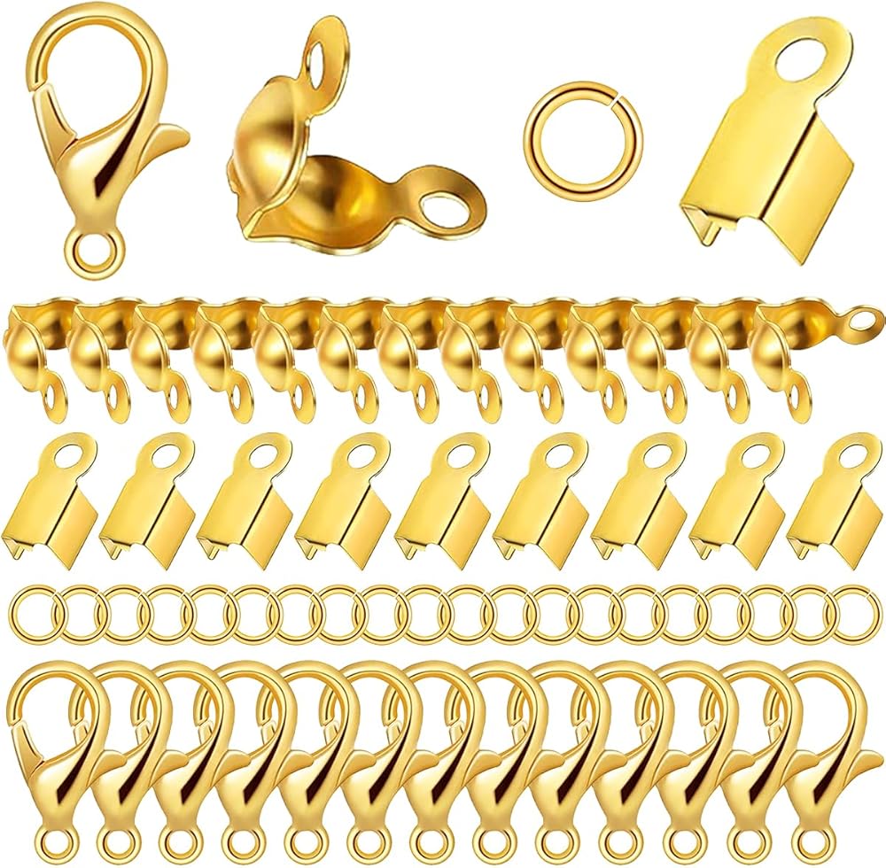 【DIY Jewelry Accessories Kit】: you will get totally 1400 pieces jewelry crafts making accessories, includes 500 pieces open jump ring connectors, 400 pieces Clamshell Fold Over Cord Ends Caps, 300 pieces bead tips knot covers, and 200 pieces lobster claw clasps, large quantity and 3 types of jewelry making supplies are suitable for different applications, meet your multiple craft projects needs