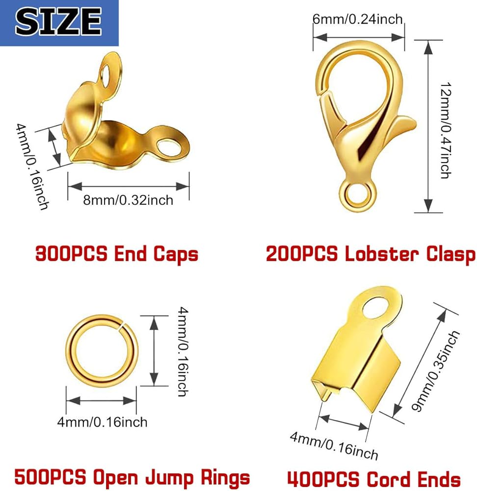 【Product Size】:The size of cord end is 4 x 9mm/0.16 x 0.35inch; the size of crimp bead knot cover is 4 x 8mm/0.16 x 0.32inch; the size of open jump ring is 4 x 4mm/0.16 x 0.16inch; and the size of lobster claw clap is 6 x 12mm/0.24 x 0.47inch