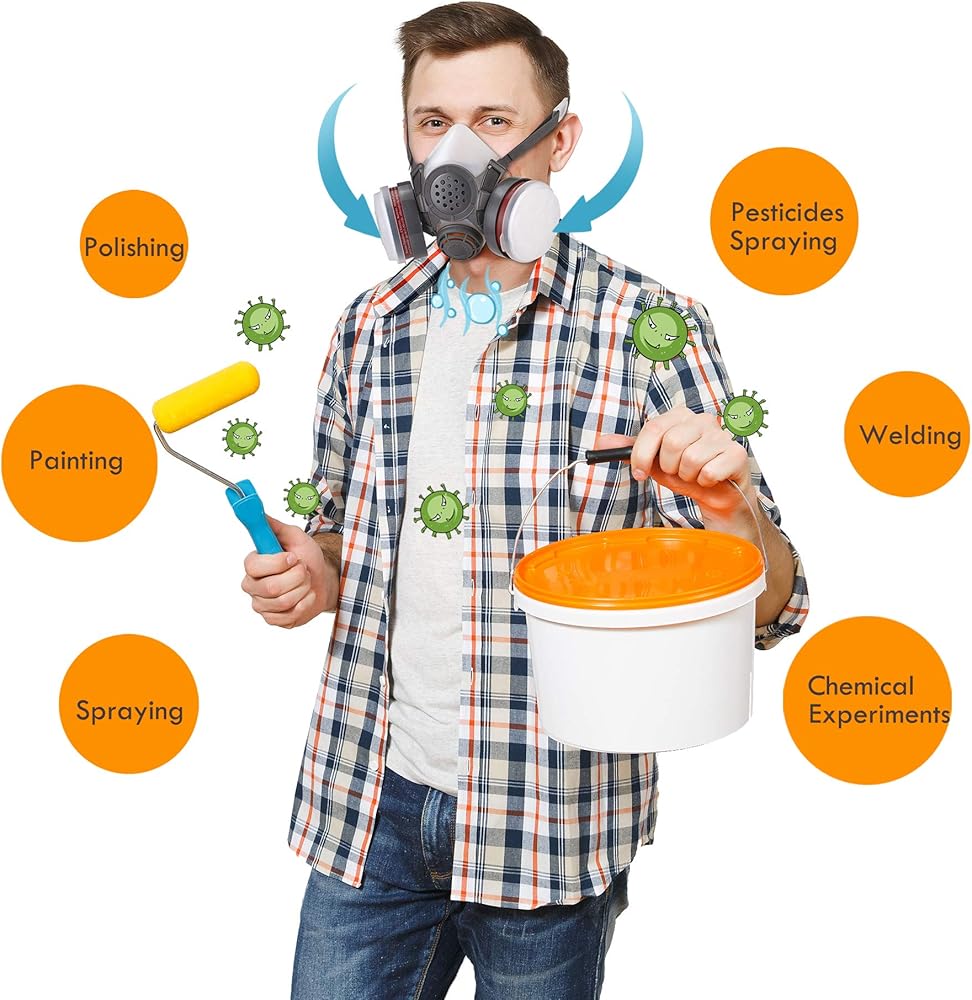 • 【حماية مزدوجة】 - يوفر لك تصميم الخراطيش المزدوجة حماية فعالة ضد الأبخرة العضوية. سهل التنفس والتنظيف.