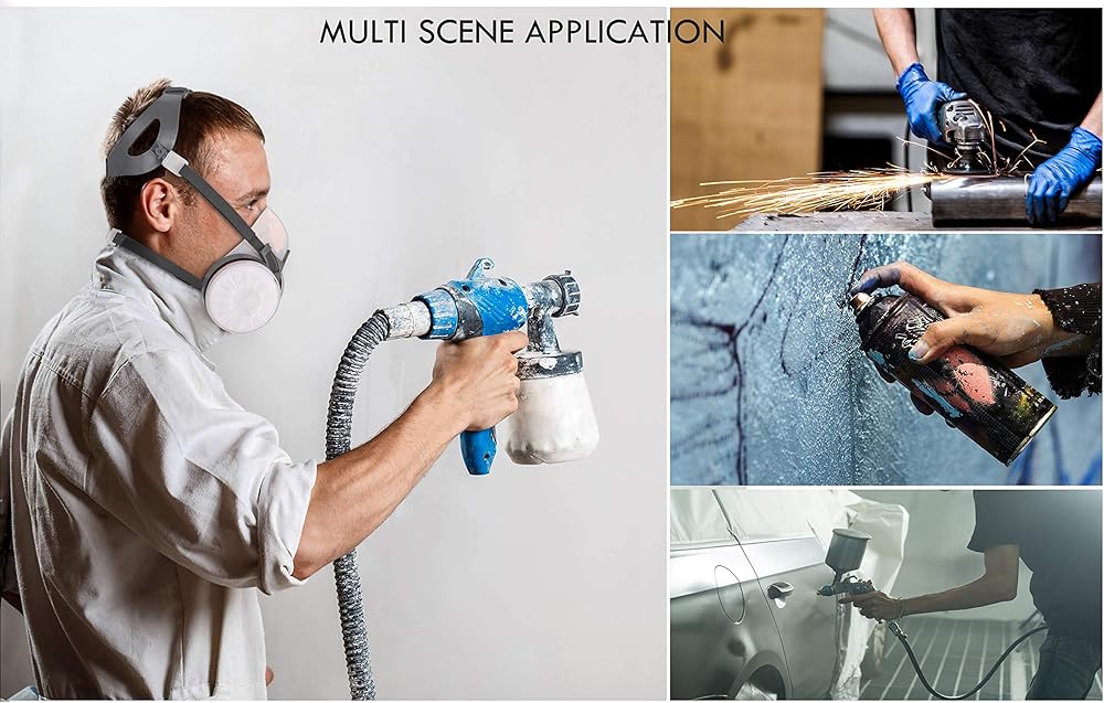 • 【استخدام متعدد المشاهد】- تعمل مجموعة أجهزة التنفس متعددة الأغراض في مجموعة متنوعة من تطبيقات مكان العمل. حماية ضد جميع أنواع الغازات والأبخرة العضوية، والكلور والبنزين والكحول وثاني أكسيد الكربون، وما إلى ذلك. يستخدم قناع التنفس على نطاق واسع في الطلاء والمواد الكيميائية والتلميع ورش المبيدات الحشرية والتجارب الكيميائية واستخراج النفط والتعدين والمعادن أو اللحام، إلخ. إذا كنت ترغب في طلب المزيد من الخراطيش، فيُرجى البحث عن الرقم التعريفي القياسي ASIN: B07TYC2DBX & B07MT7QZHY.