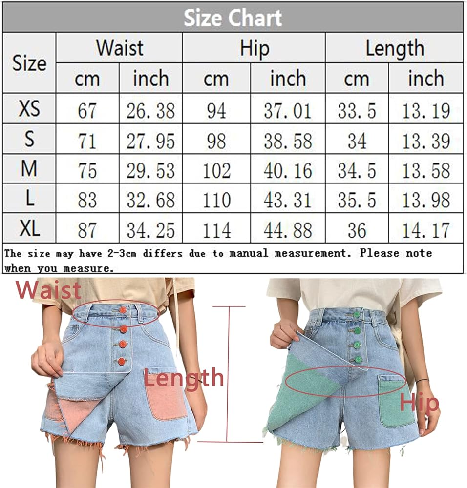 Features: patchwork jean shorts for women, color patched and high waist designed, stylish front pockets, raw hem details, button and zipper closure, sweet style, better to shape your curves.
