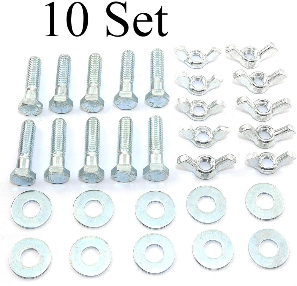 Package includes: 10 x 3/8"-16x1-1/2" Hexagon Screw Bolt + 10 x 3/8"-16 Wing Nut + 10 x 3/8" Flat Washer
