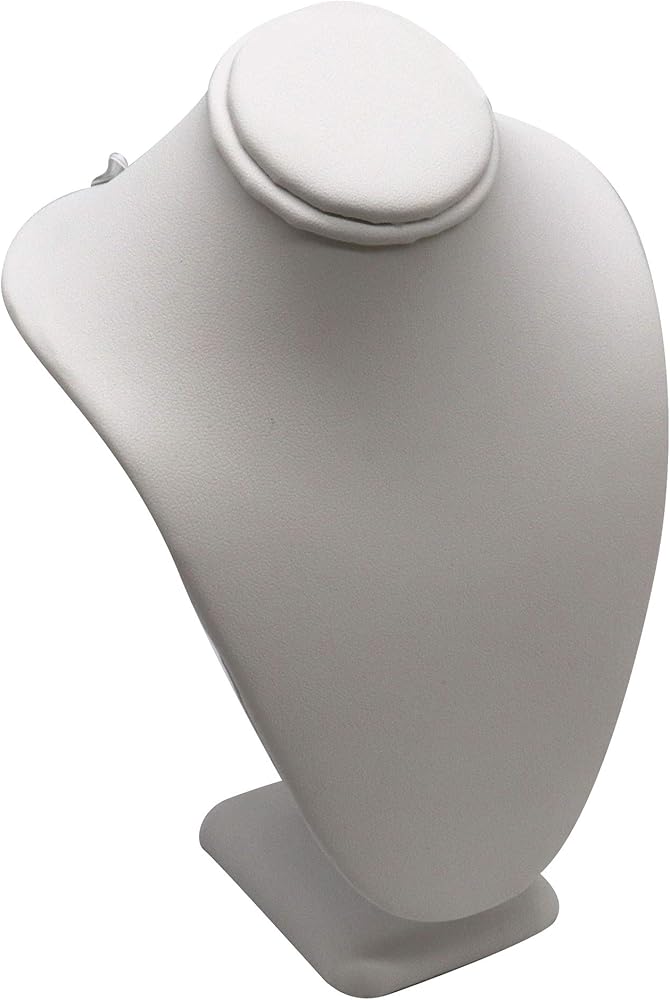 حامل عرض المجوهرات المصنوع من الجلد الصناعي الأبيض، مقاس الصدر ~ 7 1/2 بوصة طول