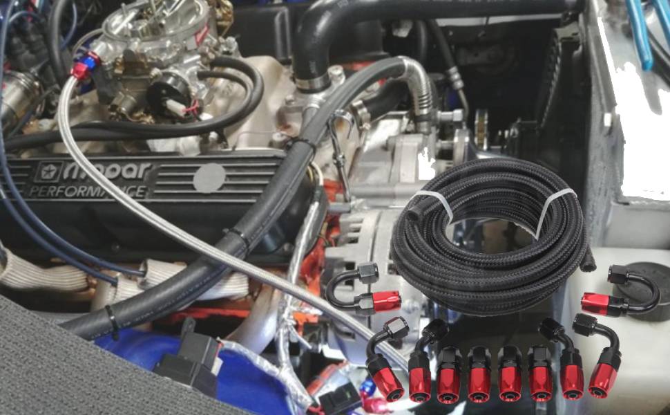 【متوافق مع】لا يناسب E85. يمكن استخدام خرطوم النايلون المضفر 10an في نظام الفرامل والمضخة وإرجاع الزيت ونظام إرجاع الوقود ونظام التبريد التوربيني ونظام النقل.
