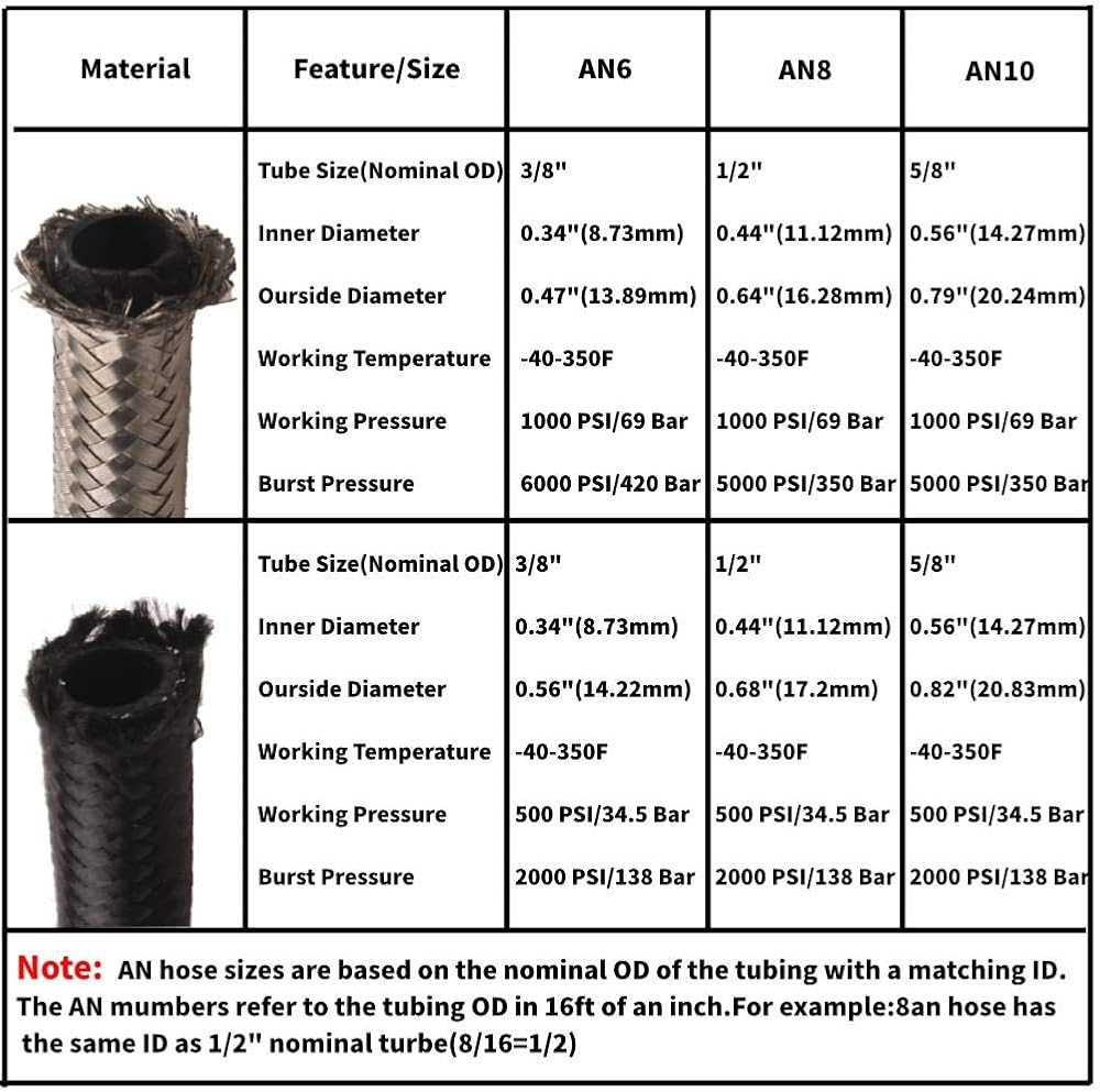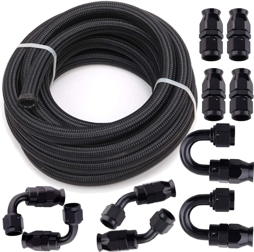 【سوف تحصل على: تشتمل مجموعة خط الوقود المضفر من النايلون 10an على: خط وقود مجدول 5/8 (الطول: 20 قدم/6 م) و10 قطع من أطراف خرطوم دوارة 10 أمبير (4 قطع مستقيمة، قطعتان 45 درجة، قطعتان 90 درجة، قطعتان 180 درجة) القطر الداخلي: 14.27 ملم (0.56 بوصة) - القطر الخارجي: 20.83 ملم (0.82 بوصة)