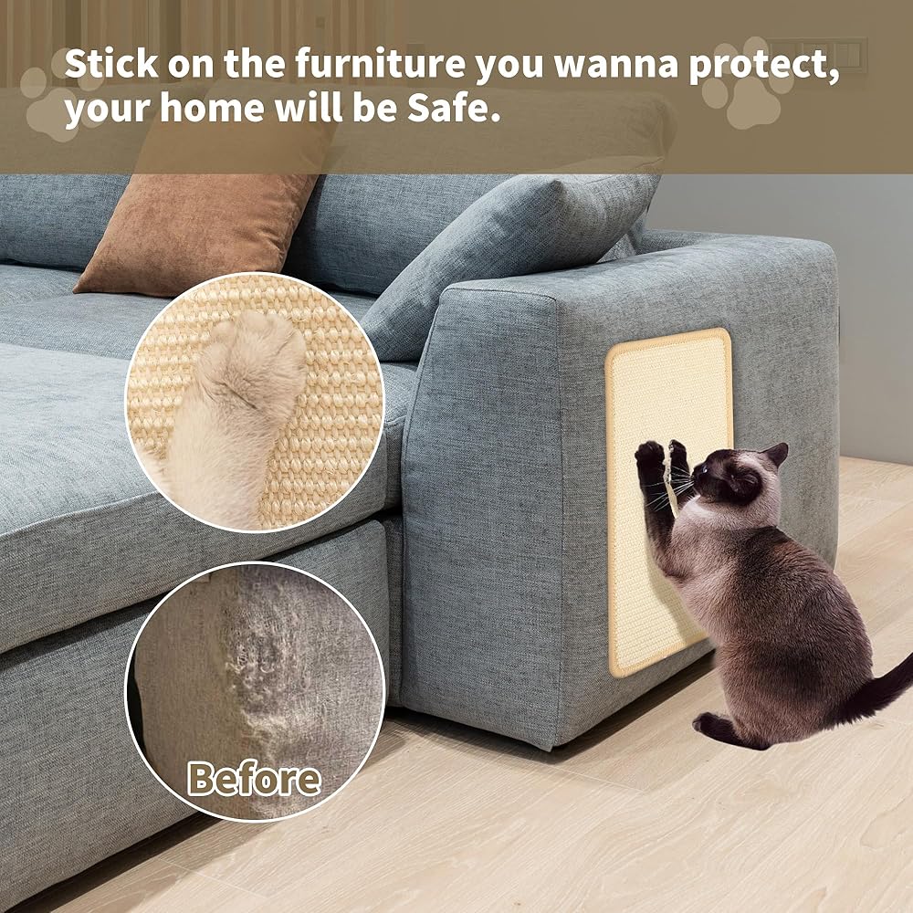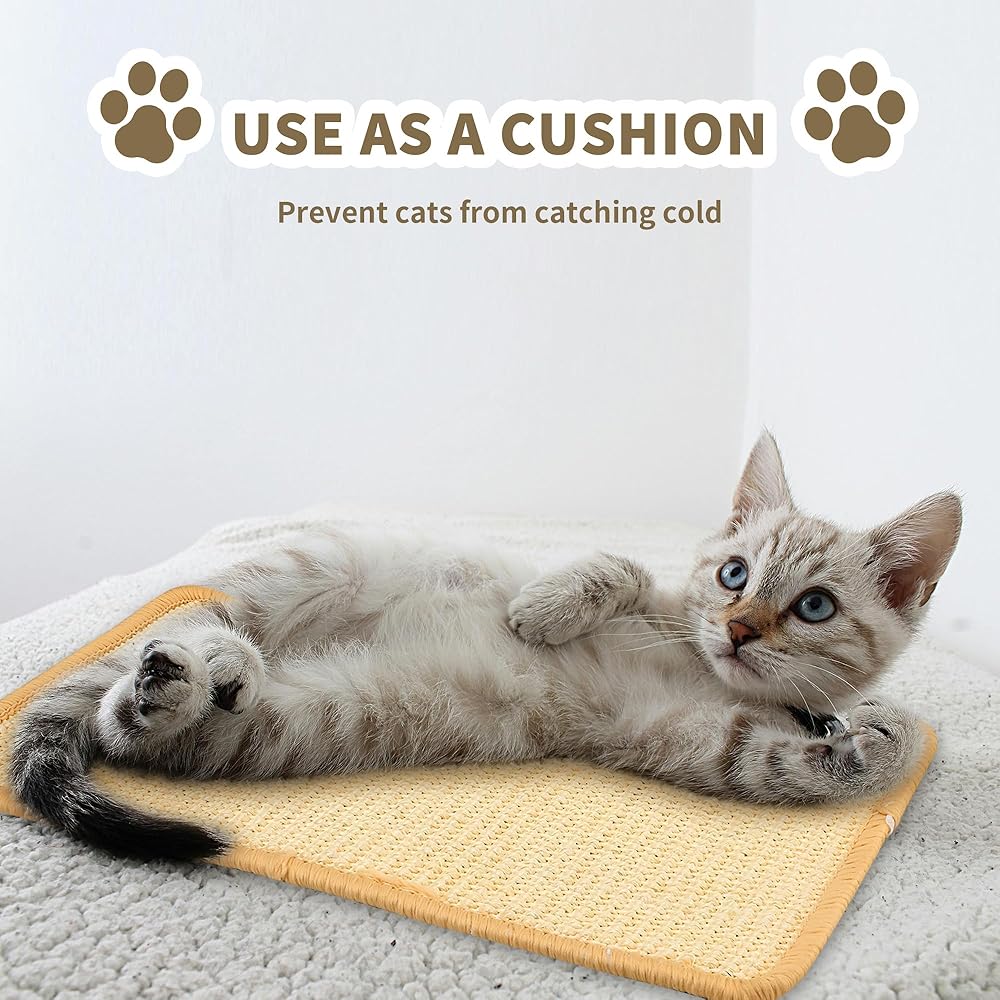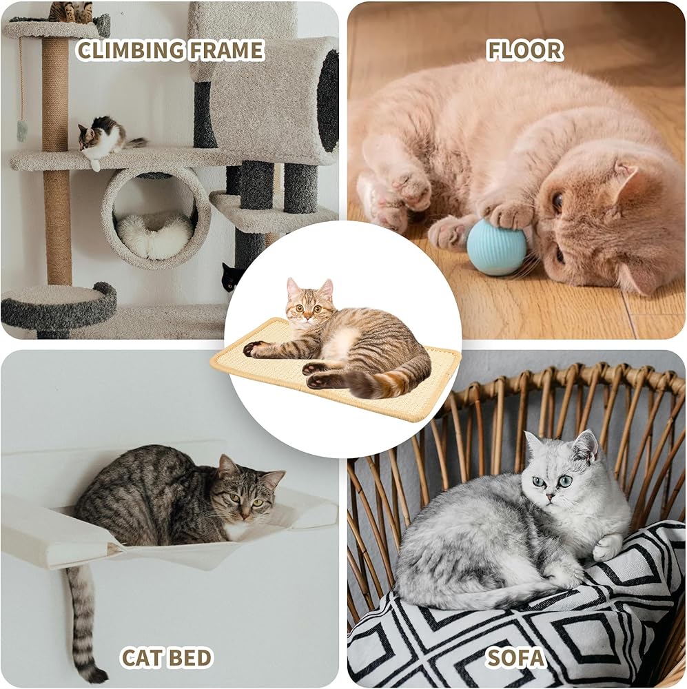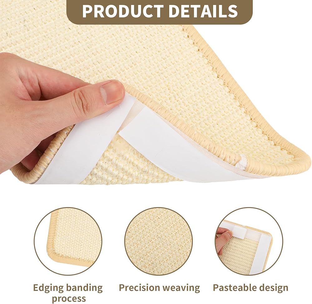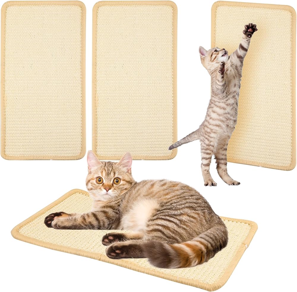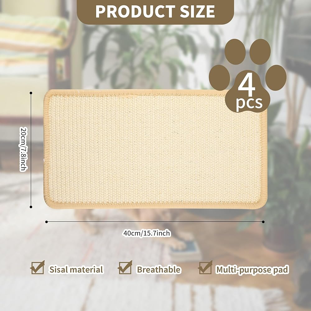 YEUIKERR 4Pcs Cat Scratch Mat Sisal Cat Scratching Pads 15.7x7.8 Inch Cat Scratching Pad with Adhesive Tape, Sisal Scratch Rug Wall Scratchers for Indoor Cat, Protect Couch, Carpets, Furniture