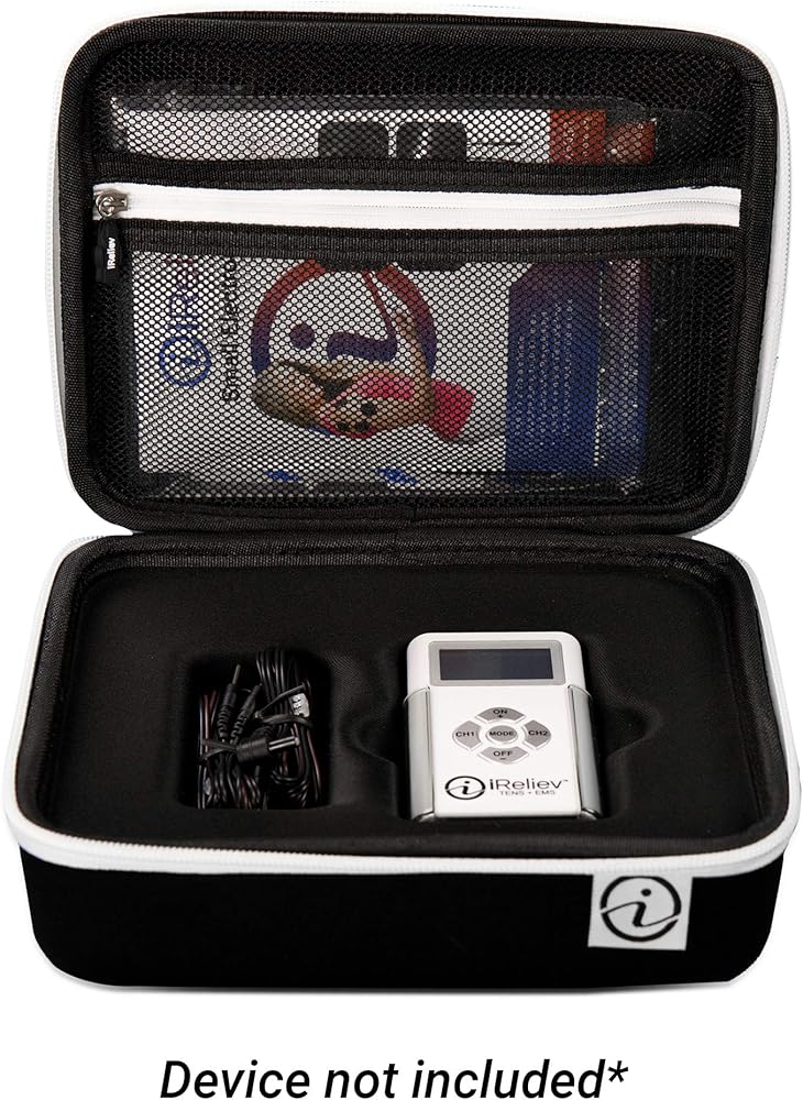 حقيبة سفر واقية من iReliev - حقيبة حمل - لوحدة TENS السلكية الخاصة بك (موديل # ET-1313) أو وحدة TENS السلكية + EMS (موديل # ET- 7070) حافظة صلبة من الفينيل مع جيب تخزين بسحاب