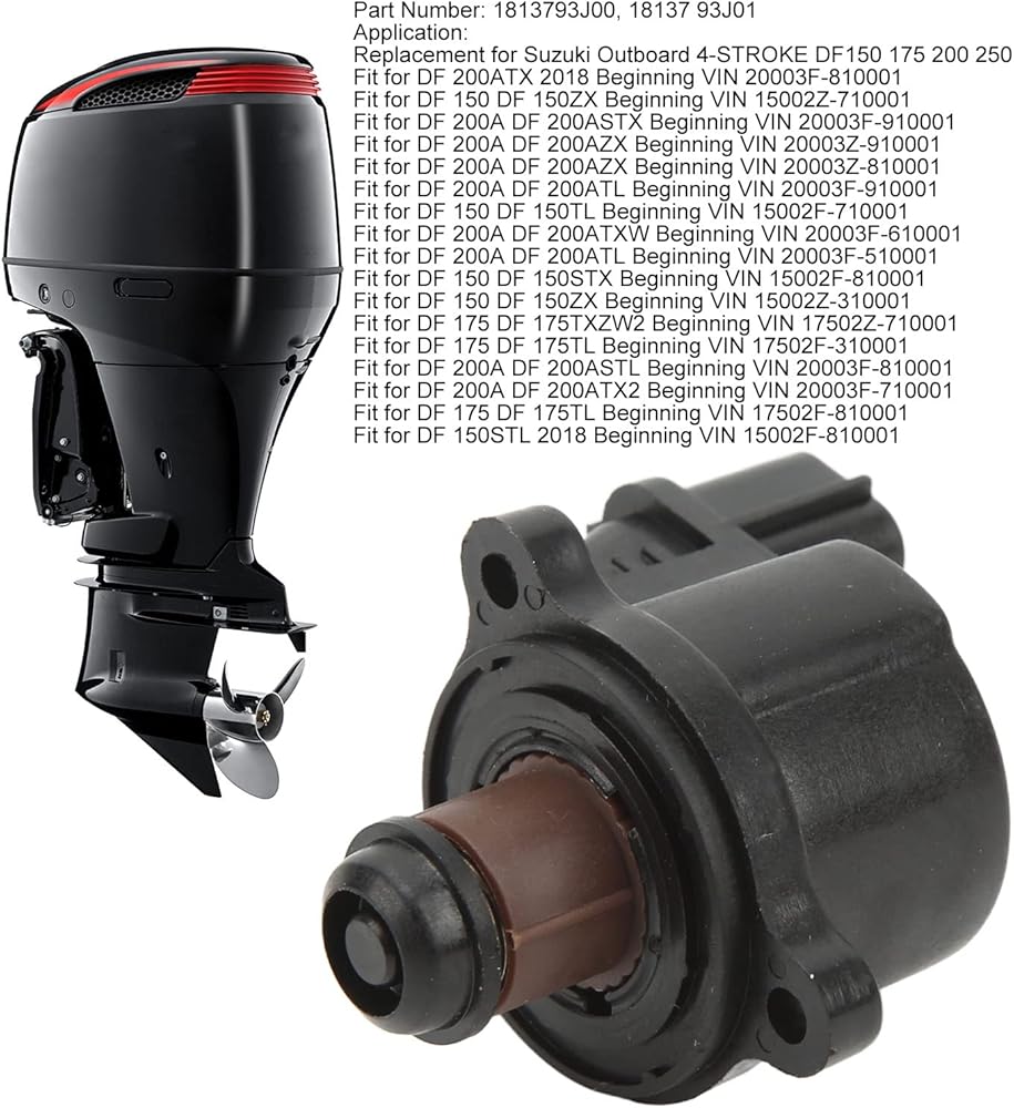 Fitment ---- Idle air control valve is replacement for Suzuki Outboard 4‑STROKE DF150 175 200 250, which is made according to the prototype model. Please double check the part number of your item, matching information is for reference only.