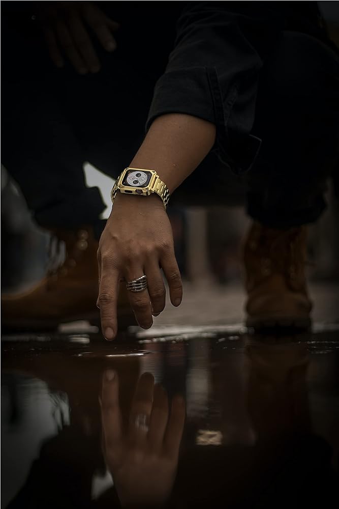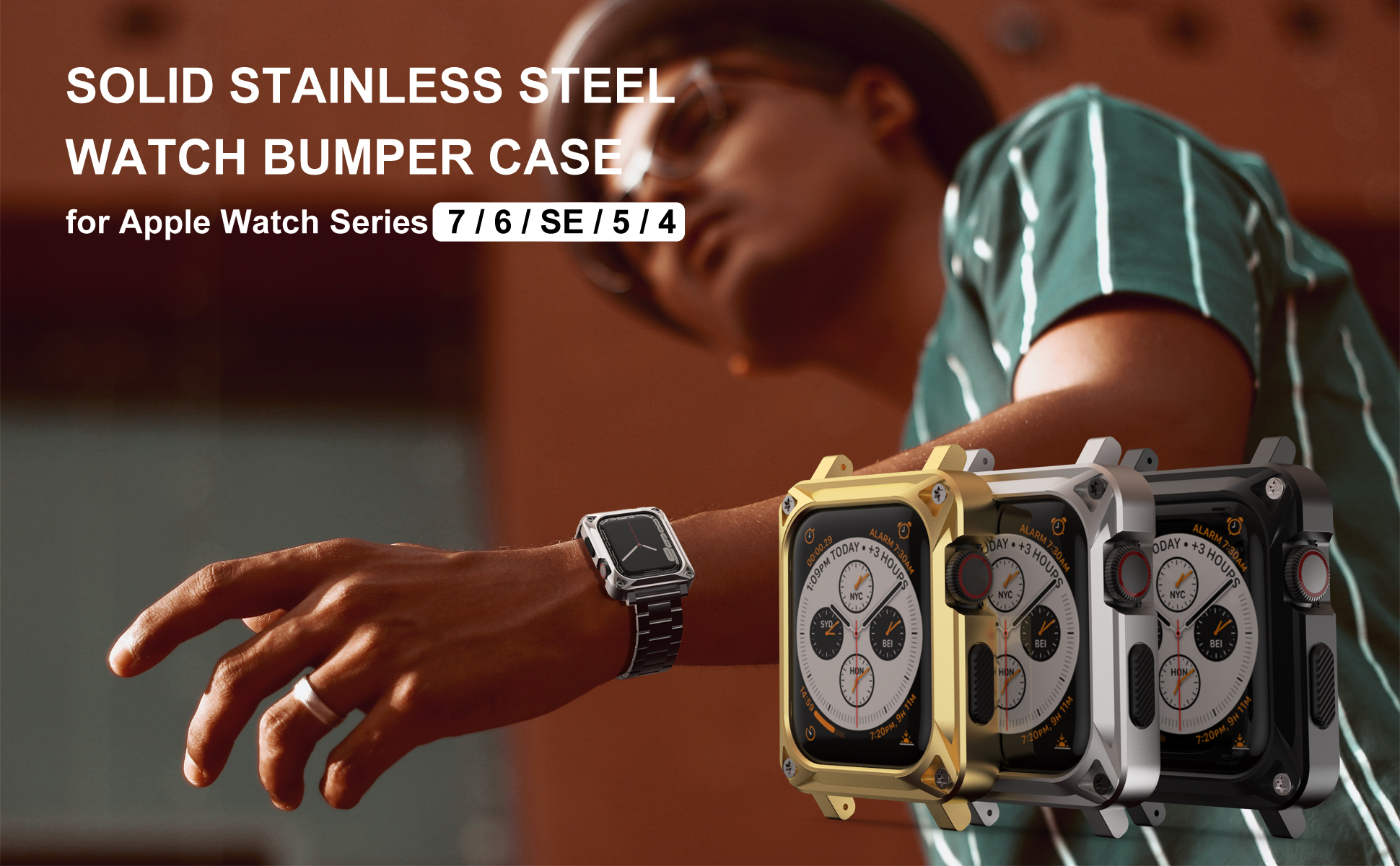 • غطاء من الفولاذ المقاوم للصدأ - غطاء الجراب هذا مصنوع من الفولاذ المقاوم للصدأ 316L. لمسة نهائية معدنية غير لامعة وأنيقة ومتينة تحمي حواف ساعتك من الصدمات والسقوط والخدوش.
