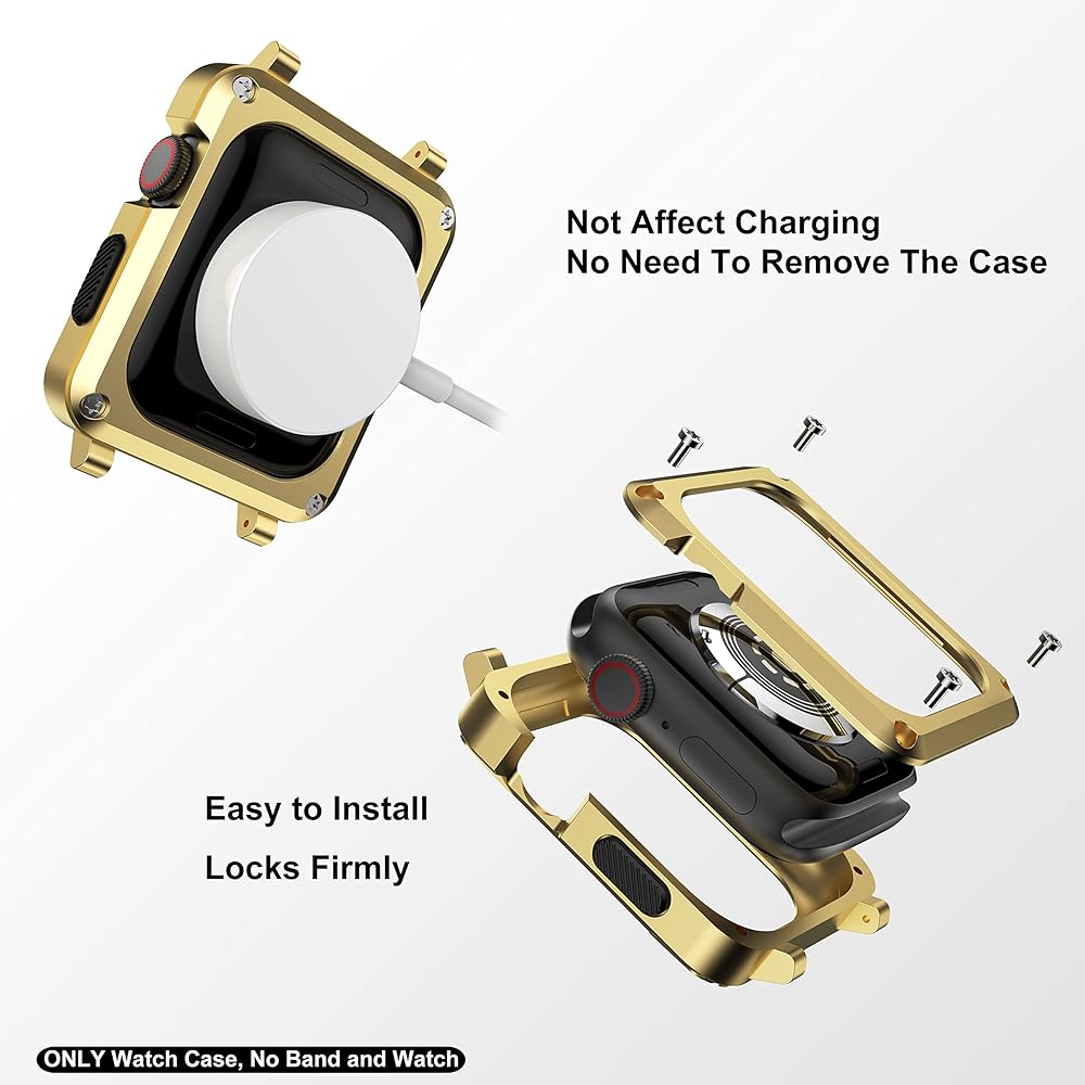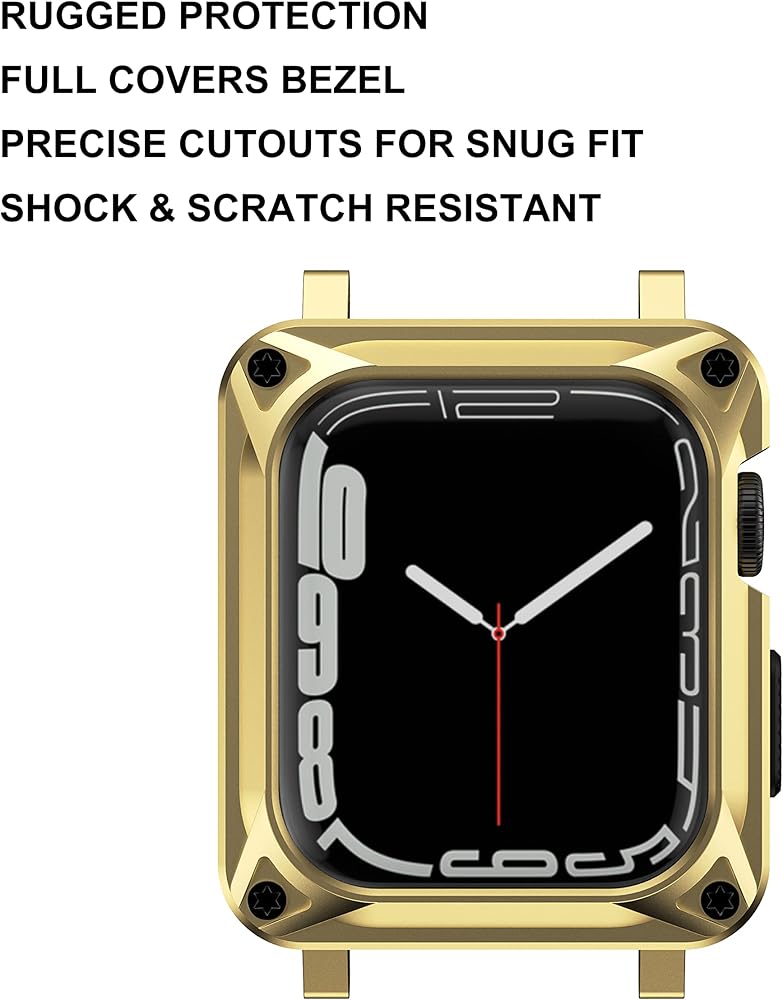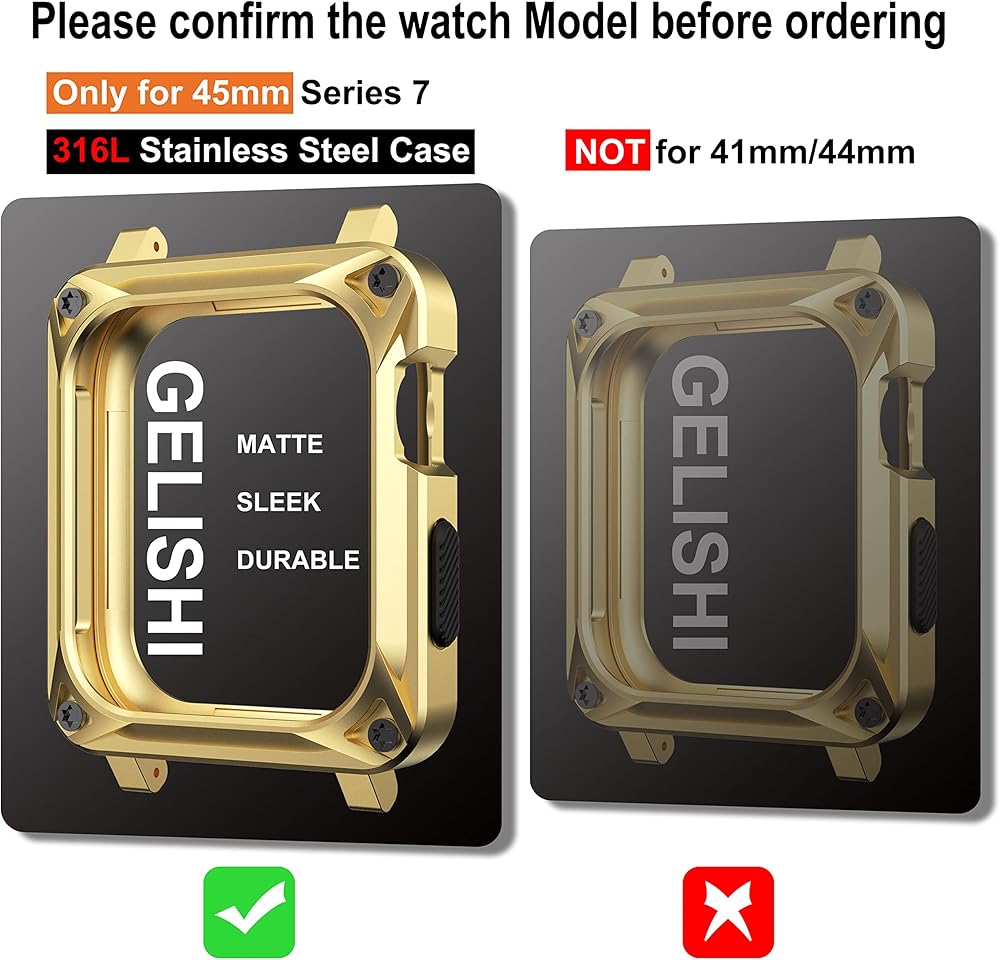 • واقي حافظة متين - حافظة معدنية GELISHI متوافقة مع Apple Watch Series 7 مقاس 45 ملم. ليس لـ 41 مم / 42 مم / 44 مم. سهل التركيب باستخدام البراغي، مغلق بإحكام ولا يسقط.
