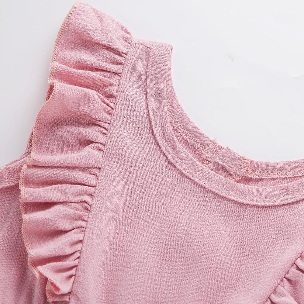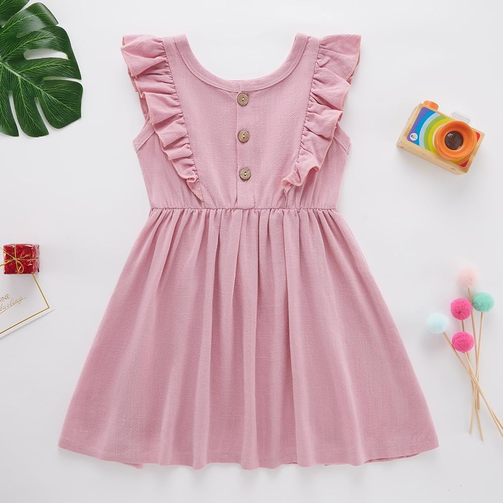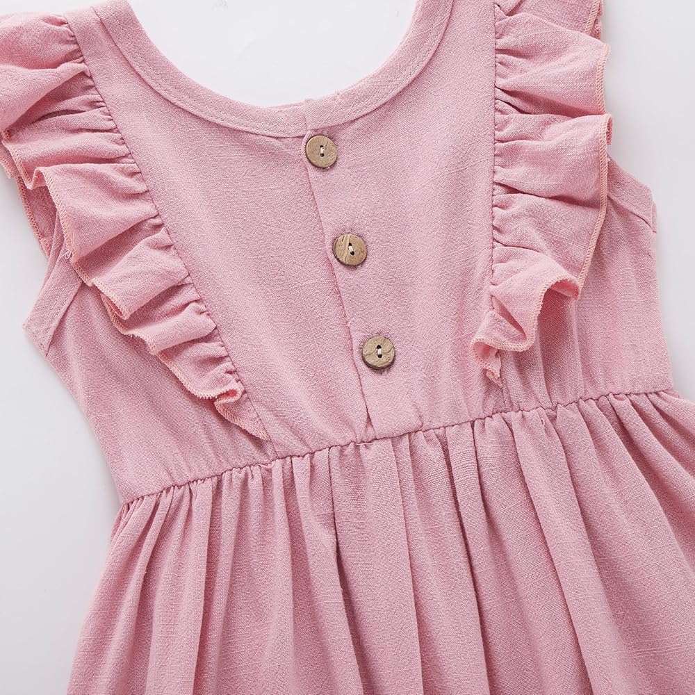 مادة الكتان القطني: مادة صحية وجيدة التهوية، تجعل ملابس الصيف للفتيات الصغيرات من 12 إلى 18 شهرًا/18-24 شهرًا/2-3T/3-4T/4-5T أكثر نعومة وراحة قدر الإمكان! أفضل هدية لأميرتك الصغيرة. فساتين للفتيات.