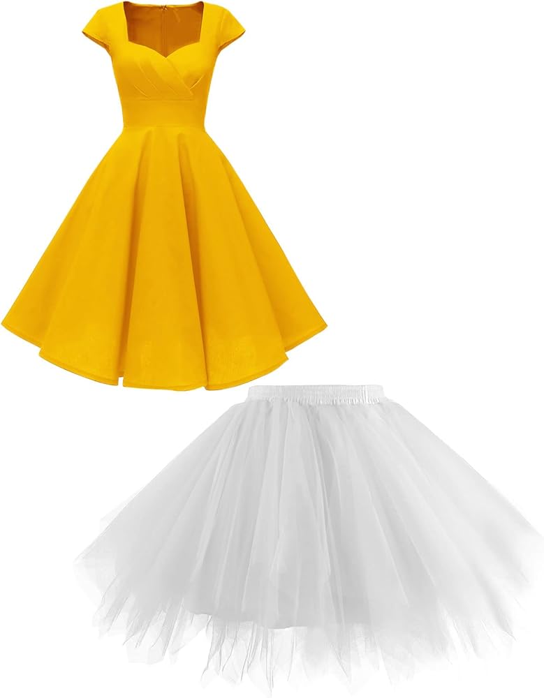 Body Shape: All body shape Applicable to: Women/Girl/Junior Season: Spring, Summer, Autumn and Winter Unique Design of Tutu: 3 layers of soft tulle to hold the skirt's shape 2 layers of lining to avoid sensitivity elastic waistband suit various body types This item is flat packed when post, please iron in low temperature to ease the crease and air out for 2 days. Fashionable Design of Cap Sleeve Dress: We use a large collar and make a simple fixing at the chest of the dress. If you think the collar is too big, you can fix it with a needle and thread or button. If you think the collar blinds you, you can remove it.