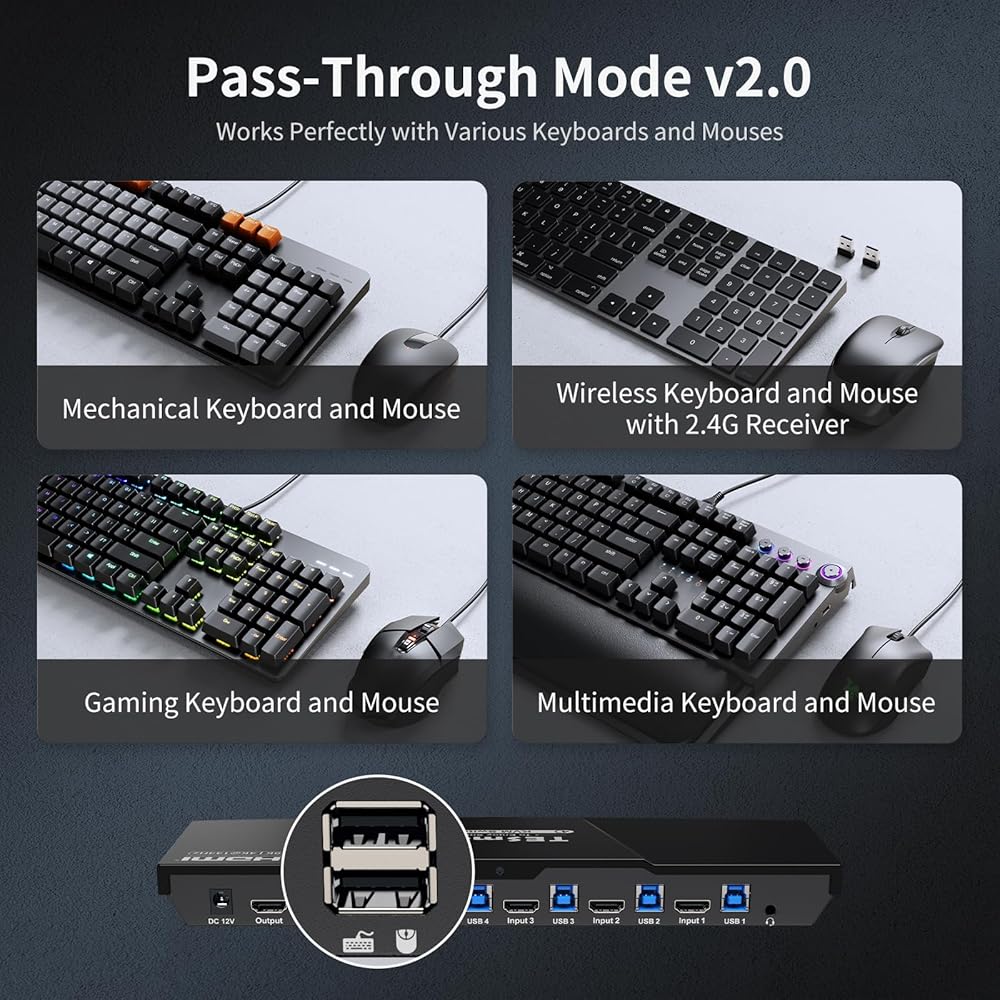 【"انفجار، سريع، ماضي" مع USB3.0 】يوفر منفذ USB 3.0 المدمج شحن هاتفك. يسمح لك بمشاركة الأجهزة الطرفية USB مثل الطابعة والماسح الضوئي وكاميرا الويب والقرص الصلب بين 4 أجهزة كمبيوتر مع معدل نقل بيانات يصل إلى 5 جيجابت/ثانية (10 مرات أسرع من USB 2.0).