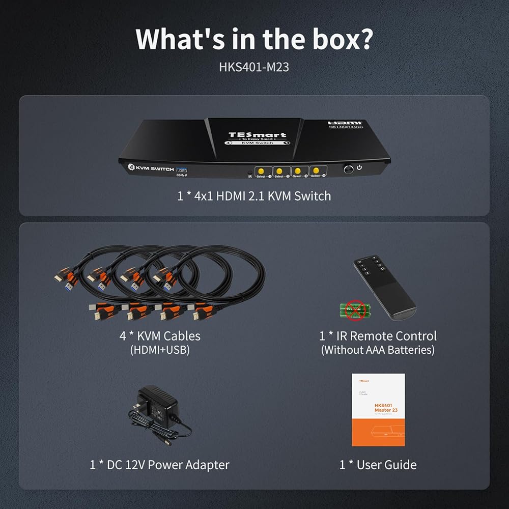 【التبديل أصبح سهلاً】توفر KVM لدينا 4 خيارات تبديل لتناسب احتياجاتك. سواء كنت تفضل استخدام جهاز التحكم عن بعد بالأشعة تحت الحمراء والزر ومفتاح التشغيل السريع وعجلة الماوس، يمكنك التبديل بسهولة بين مصادر HDMI وإدارة أجهزتك بسهولة.