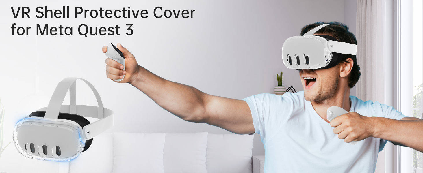 غطاء حماية HiBloks VR Shell لملحقات Meta Quest 3، غطاء واقي شفاف لسماعات الواقع الافتراضي مع فتحة دقيقة لـ Oculus Quest 3، غطاء سماعة VR مقاوم للصدمات والسقوط ومقاوم للماء