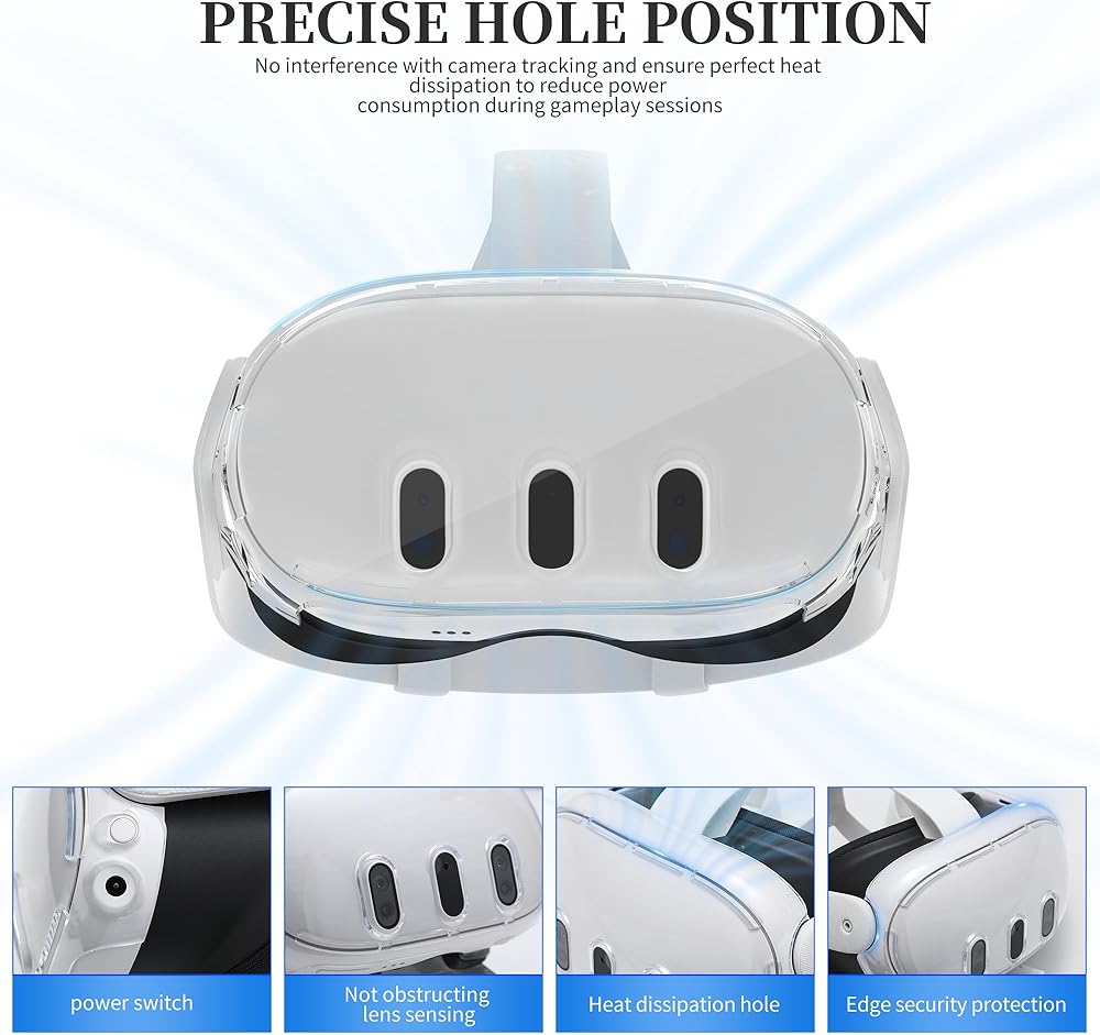 💖💖ملاءمة مثالية: تم تصميم هذا الغطاء الواقي بشكل احترافي لـ Oculus Quest 3. موضع ثقب دقيق، لا يتداخل مع تتبع الكاميرا ويضمن تبديد الحرارة بشكل مثالي لتقليل استهلاك الطاقة أثناء جلسات اللعب