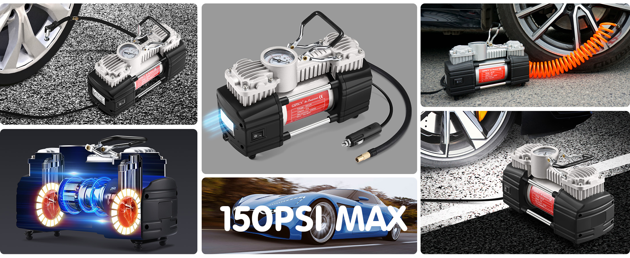 هدية السفر: أثناء رحلة سيارتك، احمل ضاغط الهواء الصغير GSPSCN، وهو سهل الاستخدام ويحافظ على إطاراتك في حالة جيدة. يمكنك شراء منفاخ إطارات صغير كهدية لأصدقائك أو عائلتك.