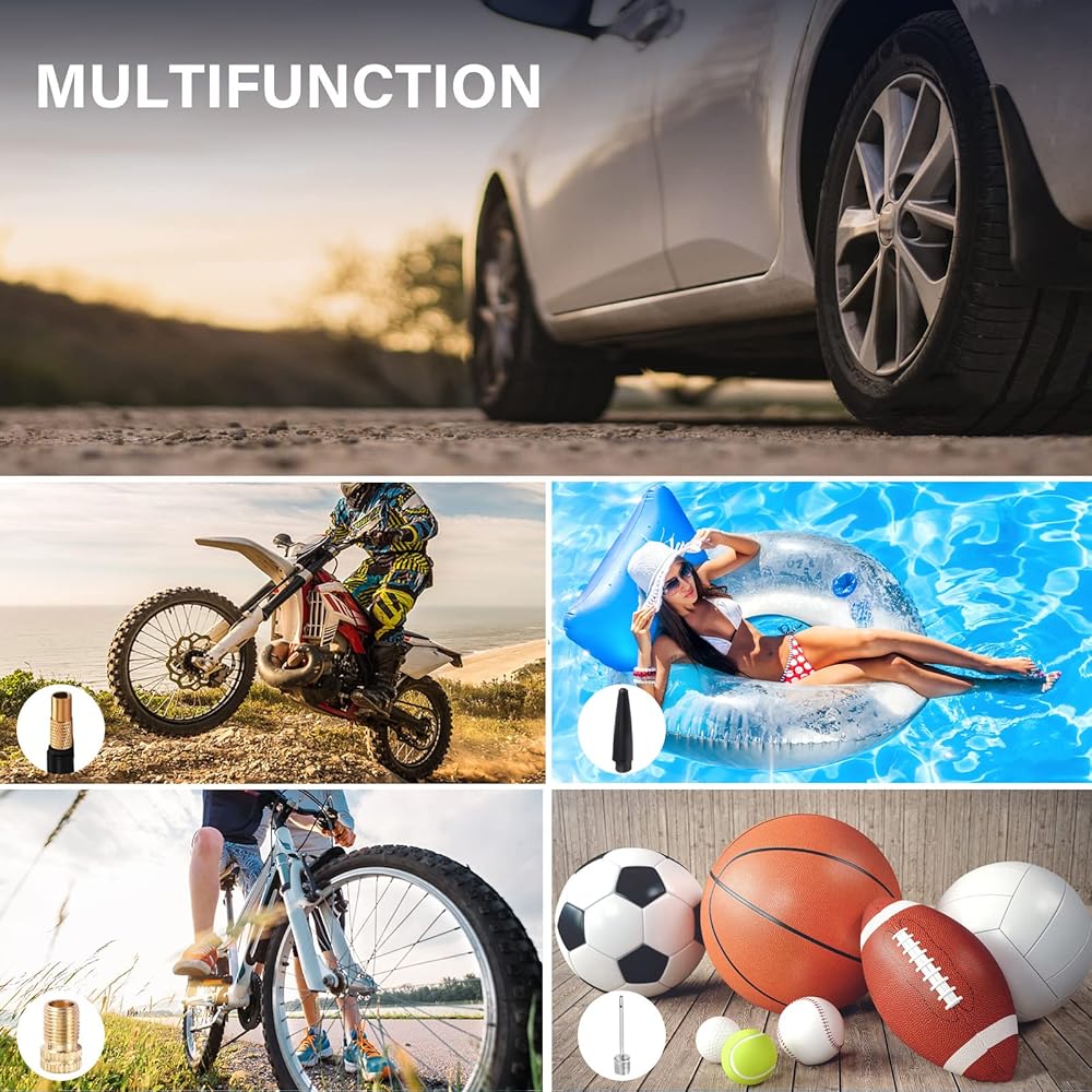 يعمل: مناسب بشكل خاص لسيارات الدفع الرباعي والشاحنات والشاحنات الصغيرة وRVs والكروس أوفر والMPVs والمعسكرات والمقطورات والشاحنات الصغيرة، كما يمكن استخدامه للسيارات والدراجات النارية وعربات الجولف والدراجات الهوائية والمزيد. أو السرير الهوائي، يأتي منفاخ الإطارات المحمول هذا المزود بمقياس مع محولات متعددة لتتناسب مع الفوهة الخاصة بك. فقط قم بتوصيله ببطارية سيارتك أو ولاعة السجائر في السيارة لتشغيله.