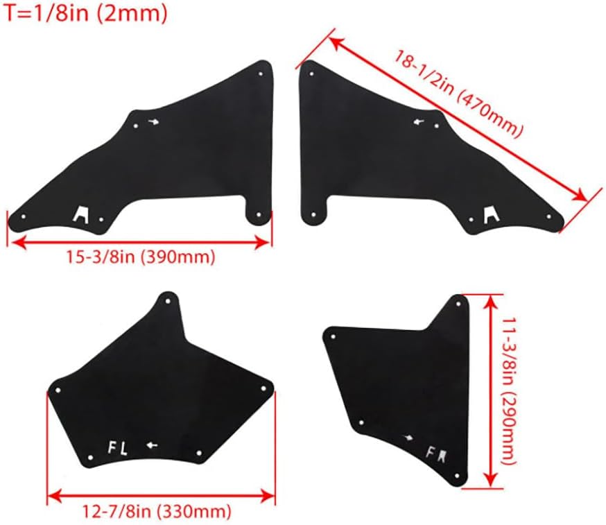 Function: Splash Shields are used as fenders, aprons, guards, splash guards, skirts or splash seals, can protect the car body from the risk of dirt, road debris and stone chips, prevent road debris from hitting your vehicle.