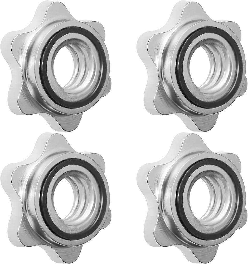 Description: Usage: Collars are easy and quick way to move your plates around, they also keep weight plates securely and safely while lifting. Application: For all 1-inch standard weight lifting barbells or dumbbell bars. Durable: Made from robust and durable material for long-lasting use. Specification: Material: Stainless Steel Package: 2 pairs * Hex nut