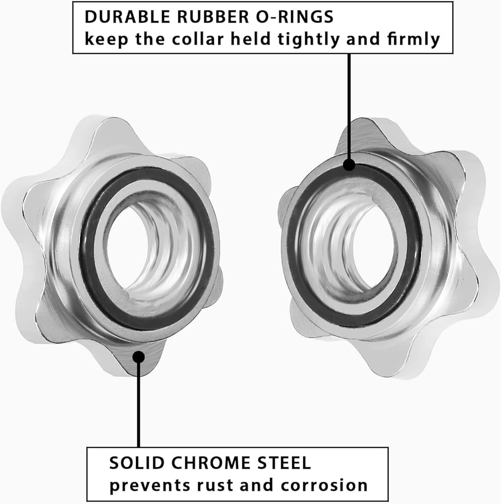 • 💪Anti-slip Spinlock Collars: Durable O-ring Rubber enhances Anti-slip silence gasket to reduce noise from disc hitting the pole. Easily can slide on and off the barbell.