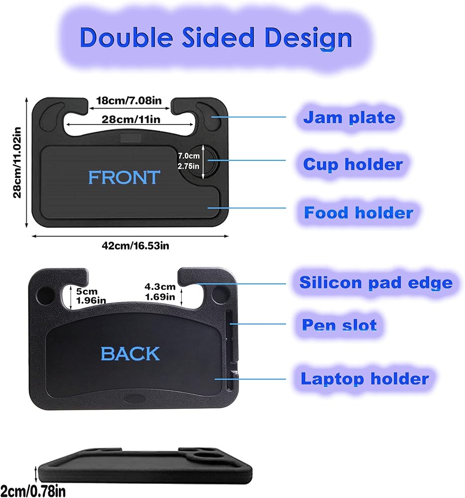 • √ سهلة التركيب والتخزين: ما عليك سوى ربط طاولة السفر بالسيارة بعجلة القيادة، وستحصل على صينية طعام مدمجة وعملية ومتعددة الوظائف. تناسب معظم عجلات قيادة المركبات (تأكد من أن القطر لا يتجاوز 4 سم/1.57 بوصة)