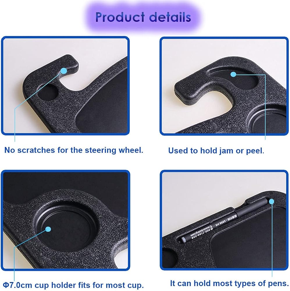 • √ جودة عالية: صينية تناول طعام السيارة من بلوريس مصنوعة من بلاستيك البولي إيثيلين عالي الكثافة القوي، بدون رائحة عند استخدامها وسهلة التنظيف، ولن تخدش عجلة القيادة.