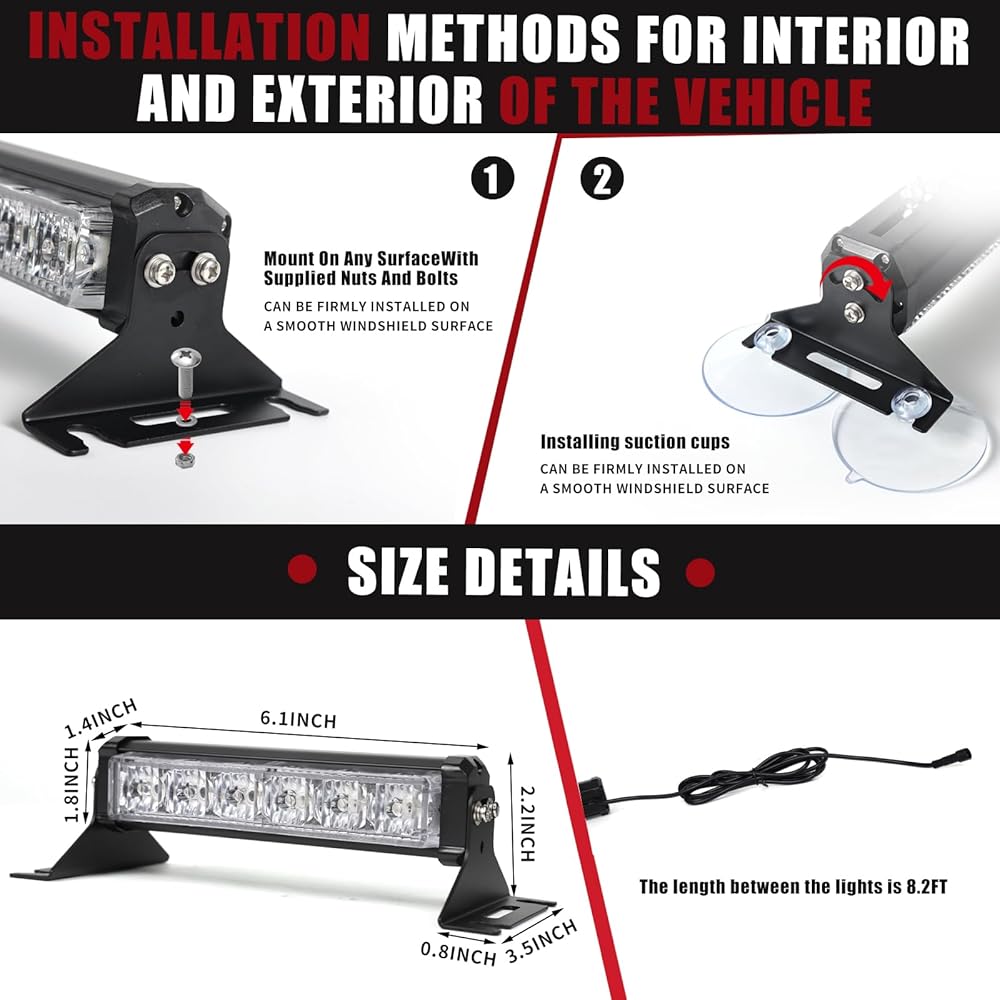 【مادة عالية الجودة】مصابيح سيارات الطوارئ مقاومة للبرودة والحرارة ومتينة، مصنوعة من مادة ألومنيوم عالية الجودة، مما يجعلها أيضًا طويلة بما يكفي لتدوم طويلاً. وفي الوقت نفسه، ليست هناك حاجة للتفكيك حتى في الطقس الممطر والثلجي، لأن شريط إضاءة السيارة مقاوم للتآكل ولا يصدأ بسهولة.