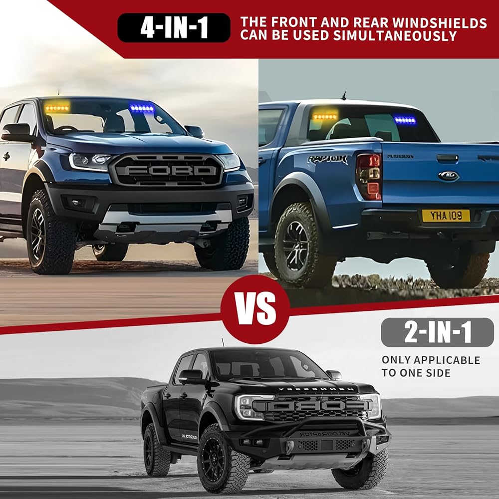 تصميم 4 في 1: بالمقارنة مع المصابيح العادية 2 في 1، يمكن لهذه المصابيح القوية 4 في 1 تحسين سلامة التحذير في الجزء الأمامي والخلفي واليسار واليمين من السيارة. مجموعة واحدة فقط من المنتج يمكنها حل احتياجات الطوارئ للسيارة بأكملها دون استخدام أسلاك فوضوية. (تتطلب قوانين بعض الولايات تركيب مجموعتين على الأقل من المصابيح القوية في الجزء الأمامي والخلفي من السيارة).