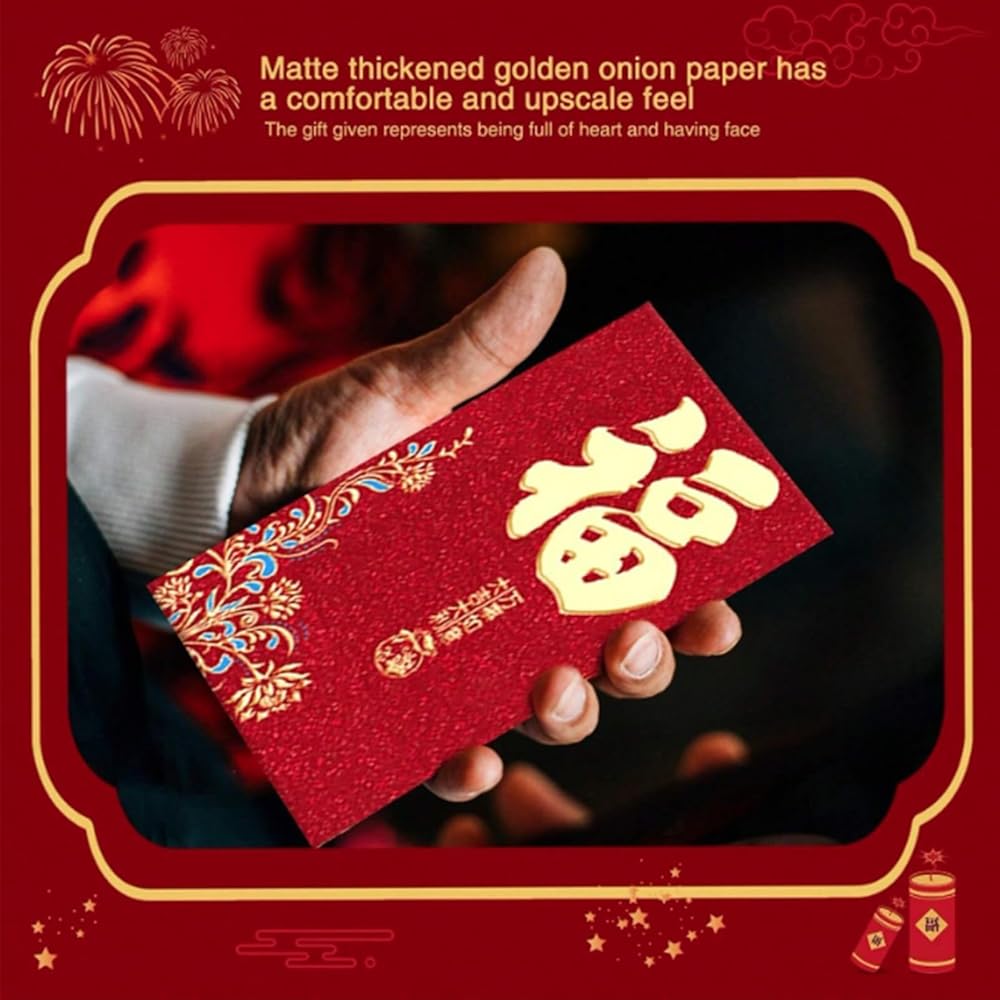 Multiple Meaningful Uses: The red envelopes are suitable for Chinese New Year, Spring Festival, birthdays, weddings, greeting cards, visiting relatives, invitations, and so on. or other special occasions.