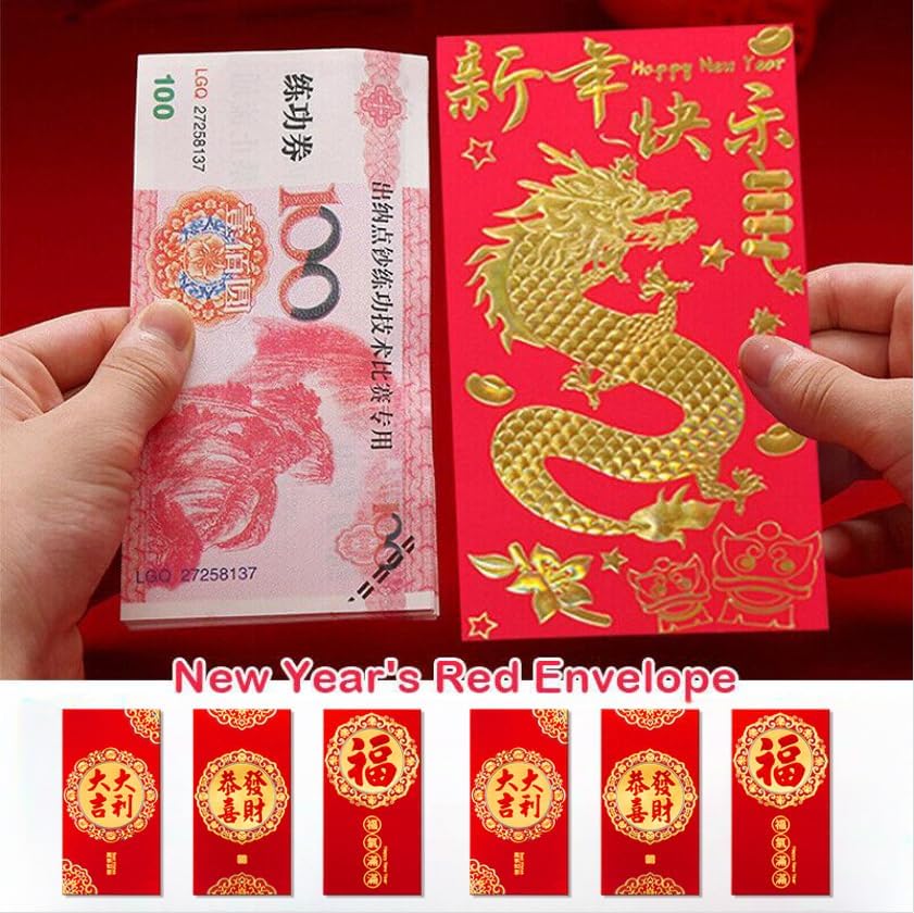 Proper size: Each envelope measures 3.5 x 6.5 inches and can hold the 100-dollar note, Chinese Hongbao envelopes represent luck and happiness.