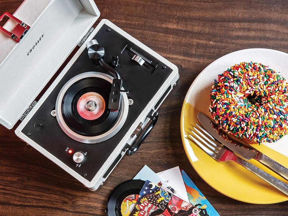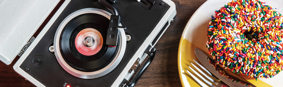 Crosley went all Honey, I Shrunk the Kids on their most popular turntable, the Crosley Cruiser, and possibly created the Cutest. Record Player. Ever. Cleverly, they named this micro machine the Crosley Mini Cruiser, but don't let its size fool you! This is not a toy and has the same features and tech as its big sister: adjustable pitch control, built-in stereo speakers and an aux out (headphones) port with RCA adapter allowing you to easily plug this into your current music setup. The Mini Cruiser also has a humble Bluetooth transmitter that connects to any Bluetooth speakers so you can play your 3" record collection wirelessly. It's like minuscule magic! Take this teeny turntable anywhere thanks to the suitcase design with carry handle and the fact that you can power this petite platter with a micro USB or 4 AA batteries. Just a little reminder: this adorable apparatus only plays 3" records and will not play your full-size records or 7" records.