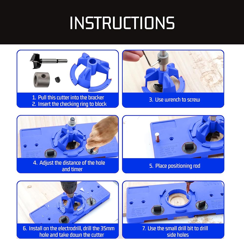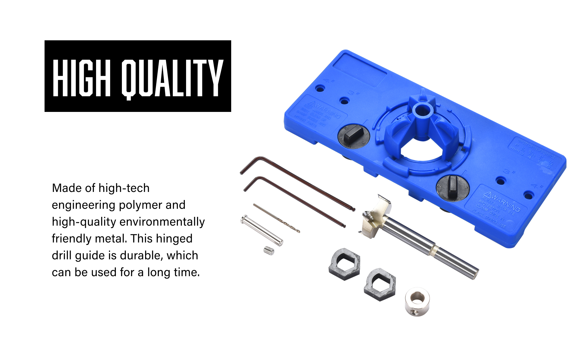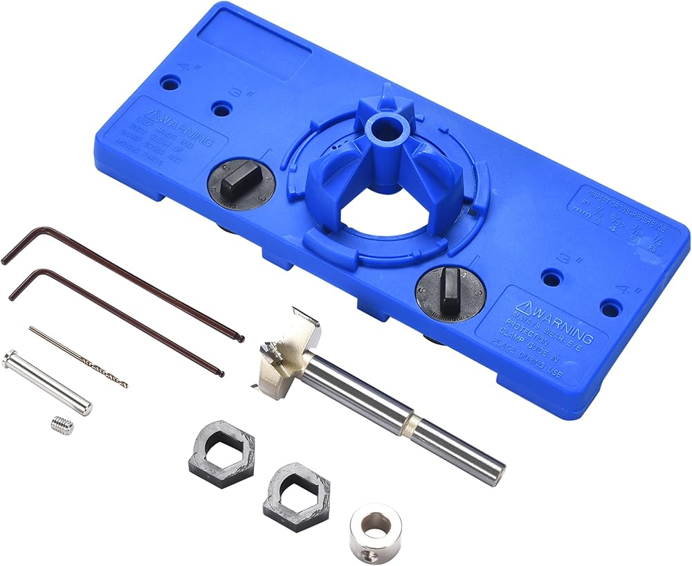 JIG HIDDEN HINGE JIG: إن لقمة الحفر الحادة المضمنة في مجموعة أدوات تهزهز المفصلات هذه تقوم بسهولة بحفر ثقوب جديدة بأقل جهد، مما يجعلها مناسبة للتشغيل المنزلي حتى بدون مهارات احترافية.