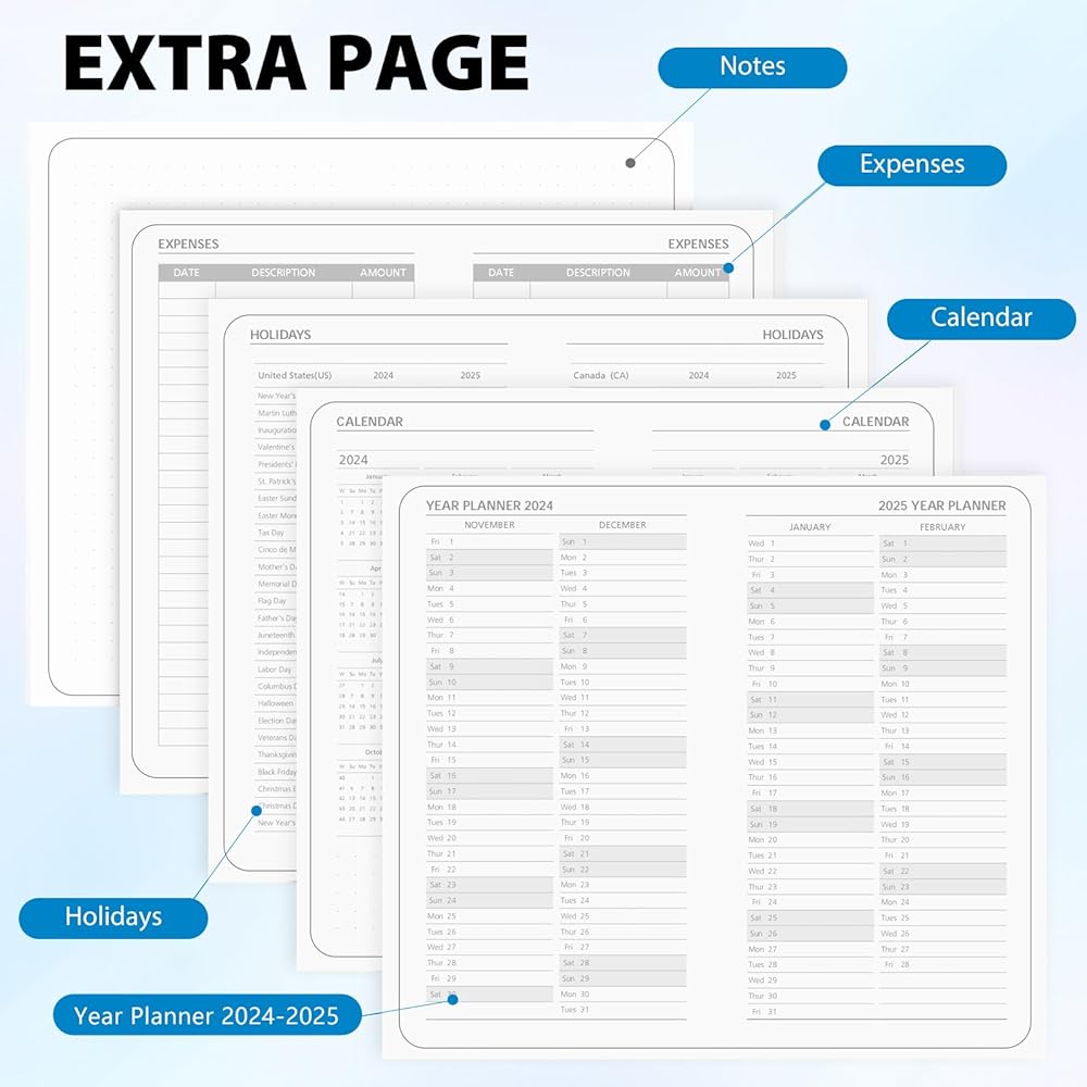 【🐇 تنظيم محسّن】خطة عام 2024-2025 + عمود الملاحظات في الصفحة الشهرية + نظرة عامة على تقويم 2024-2025 + صفحات العطلات 2024-2025 + صفحات تعقب النفقات + صفحات التاريخ المهمة + صفحات الاتصال وكلمة المرور + 7 صفحات ملاحظات. التركيز على تلبية جميع احتياجاتك.