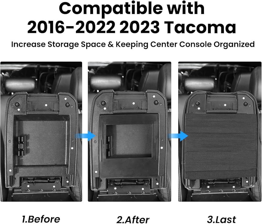 • 【صندوق تخزين مخفي】يوفر صندوق تخزين وحدة التحكم المركزية المطور، المصنوع من مادة ABS الممتازة، مساحة مخفية للأشياء القيمة مثل النقود والمحافظ والمفاتيح. يتطابق لون صندوق التخزين وملمسه بسلاسة مع الجزء الداخلي من تاكوما، تمامًا مثل OEM!