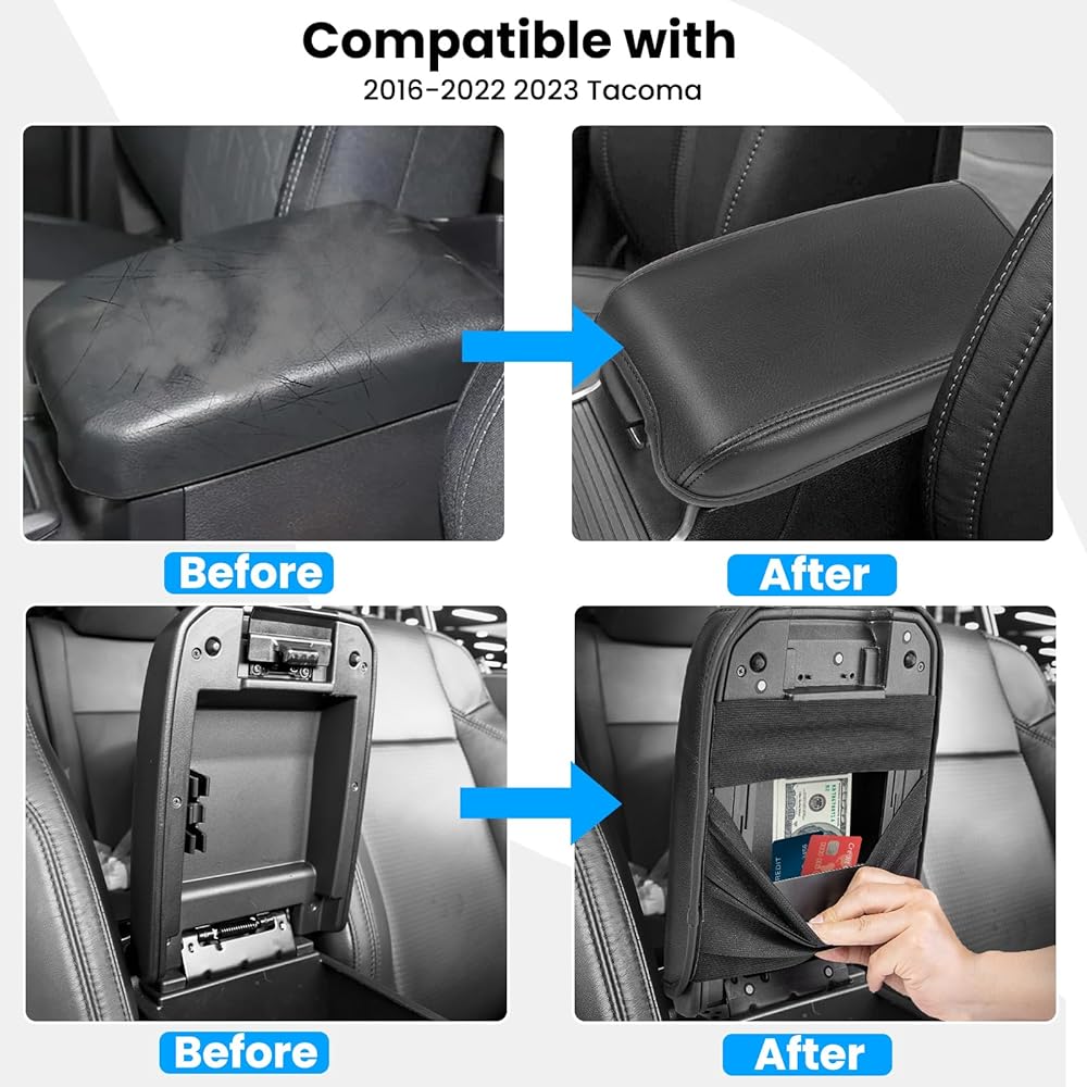 • 【راحة معززة】غطاء وحدة التحكم المركزية مملوء بمطاط النيوبرين الناعم، مما يوفر طبقة إضافية من الراحة. تعمل البطانة الإضافية على تحسين تجربة القيادة، وتعالج أي إزعاج أو ألم في مرفقيك. لا تعمل ملحقات تاكوما لعام 2016-2023 كإضافات أنيقة فحسب، بل تعمل أيضًا كحاميات موثوقة.