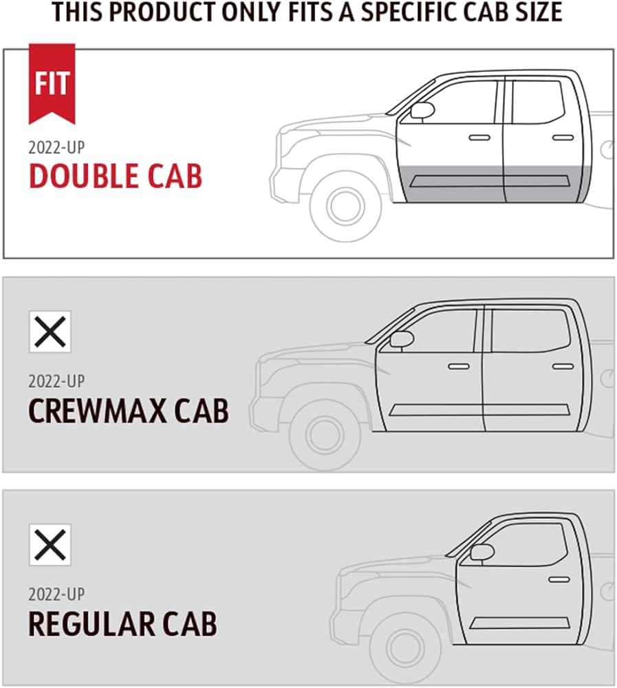 [COMPATIBLE WITH] 2022-2024 Toyota Tundra | Double Cab [Cab Size Note: Only fit Double Cab with 2 full-size front doors & 2 narrower rear doors. NOT for CrewMax Cab with 4 full-size doors. (See Image for more info)]