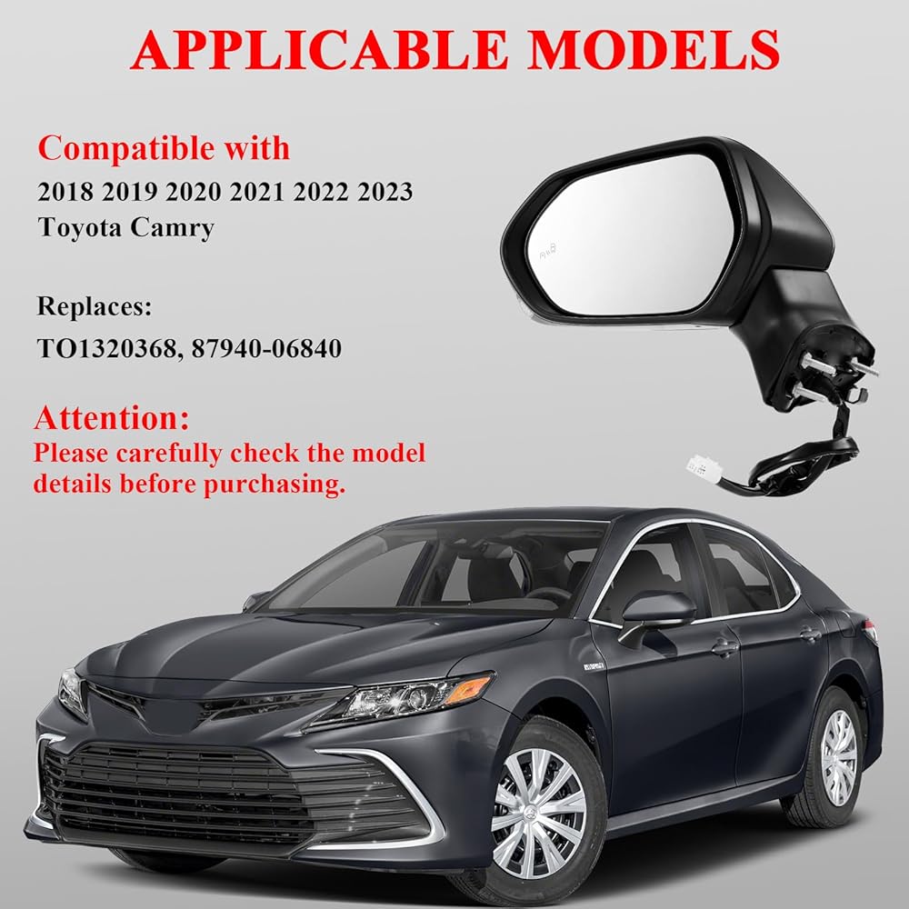 【متوافقة مع】تتوافق مرآة السيارة هذه مع الجانب الأيسر للسائق 2018 2019 2020 2021 2022 2023 2024 Toyota Camry. رابط الأجزاء: TO1320368، استبدل رقم OE: 87940-06840.