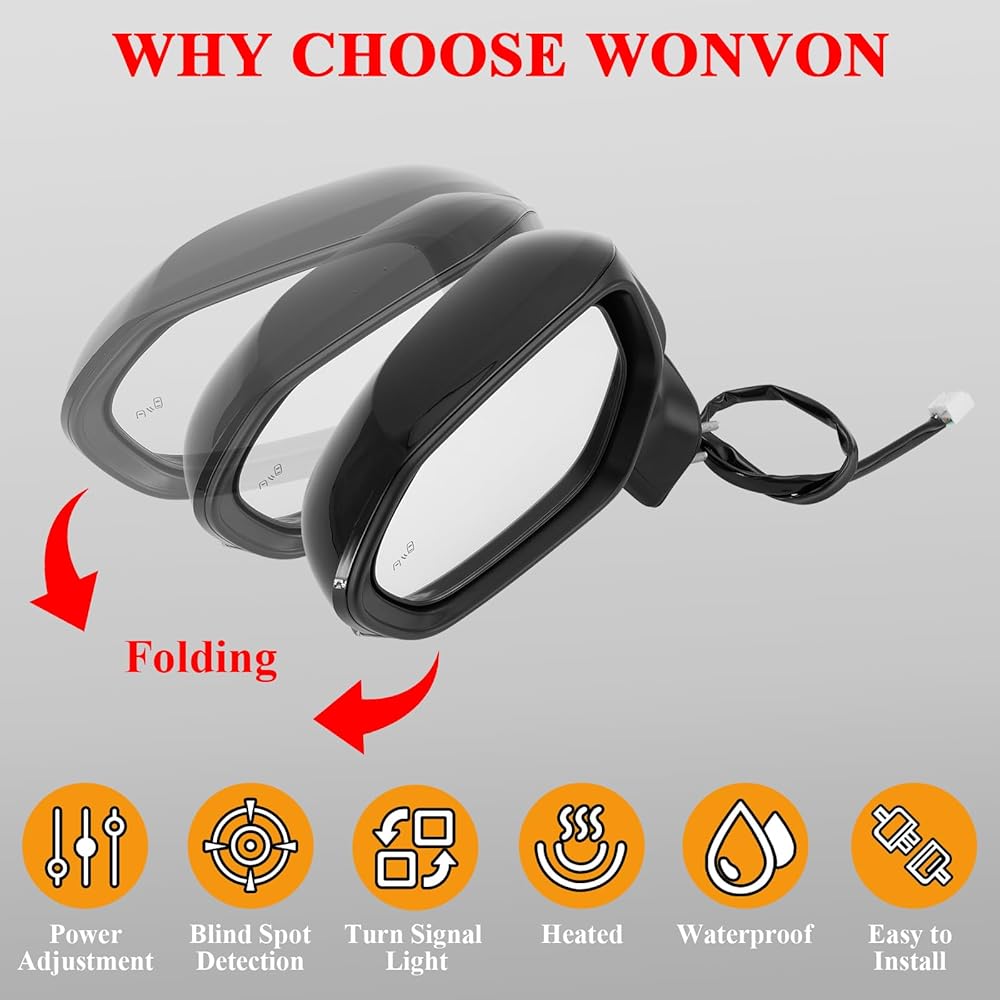 【سهلة التركيب】تتميز مرايا السيارة WonVon بتصميم 1:1 وهي بديل مباشر لمرايا سيارتك الأصلية. لا توجد حاجة لأي أدوات خاصة والتركيب بسيط.