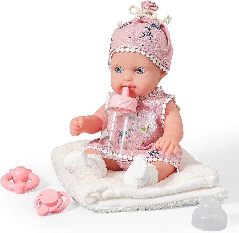 حزمة هدية كاملة: فاجئ أميرتك الصغيرة بصندوق هدايا دمية الطفل الذي لا يتضمن الدمية الرائعة فحسب، بل يشمل أيضًا الملحقات الأساسية. تأتي العبوة مع زجاجة وخشخيشة ولهاية وبطانية مريحة، مما يجعلها هدية شاملة ومبهجة.