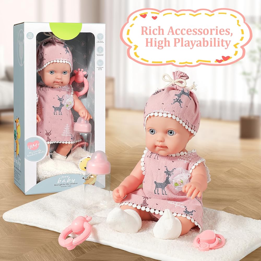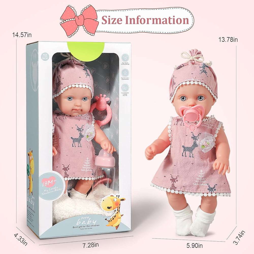 حجم مثالي للأطفال الصغار: تم تصميم دمى الأطفال مقاس 12 بوصة مع وضع سلامة طفلك واستمتاعه في الاعتبار. المقاس مناسب تمامًا للفتيات بعمر سنة فما فوق، مما يوفر رفيقًا قابلاً للاحتضان يسهل التعامل معه.